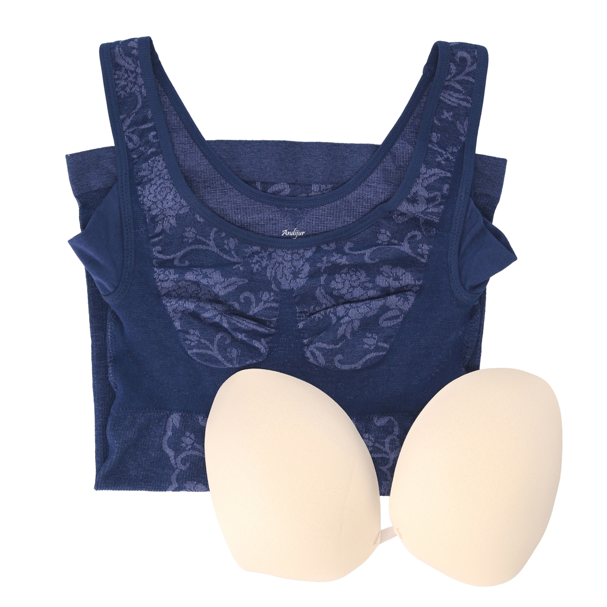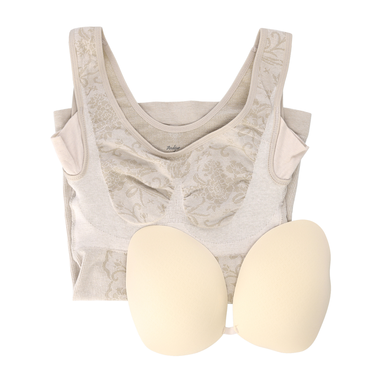 届いてすぐ着てみました。パッドがすごく進化していて、ふわふわだし丸いバストになります。 キャミ自体も綿が気持ち良くて締め付けもちょうどいい感じ。汗も吸ってくれたので汗取りインナーはいらないと思います。 そして色も柄も素敵でした!ここまでオシャレなのってあまりないですよね。満足です。