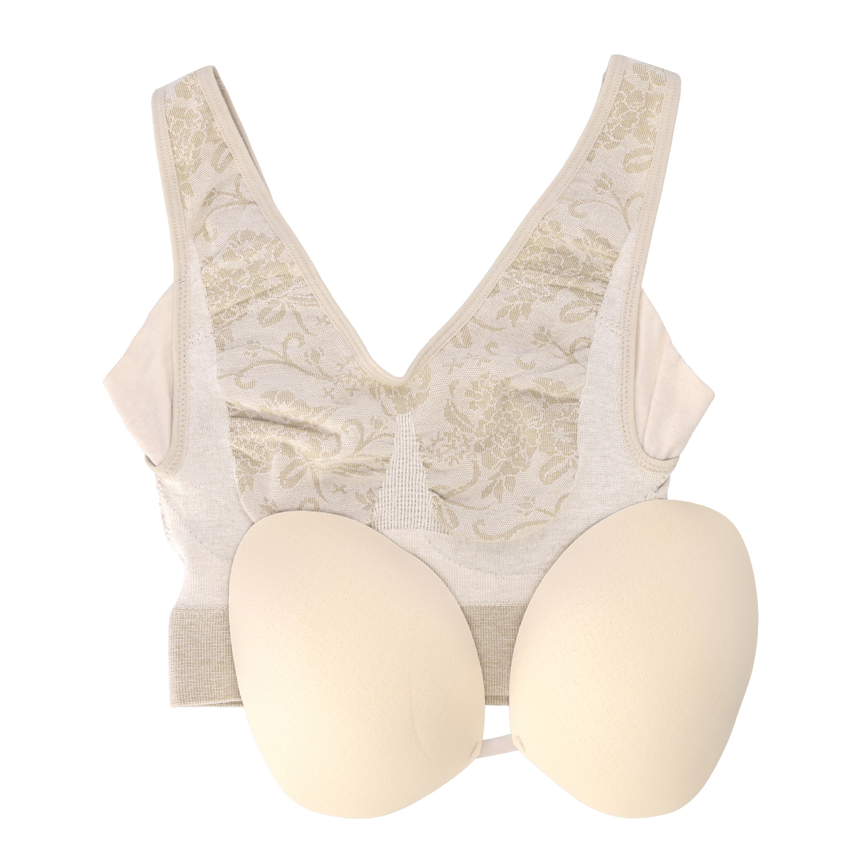 [商品寸法(ヌード寸法)cm] サイズ バスト S〜M: (72〜87) L〜LL: (86〜101) 3L〜4L: (100〜115) [仕様] ・フルカップ・ワイヤー無・パッド有(取外し可) [素材] 綿 55% ナイロン35% ポリウレタン10% [お手入れ] 洗濯機洗い可 [注意事項] ※濃色は淡色と分けて洗う ※洗濯後直ちに干す ※パットは取り外して洗う ※つけ置き禁止 ※蛍光増白剤禁止 【中国製】