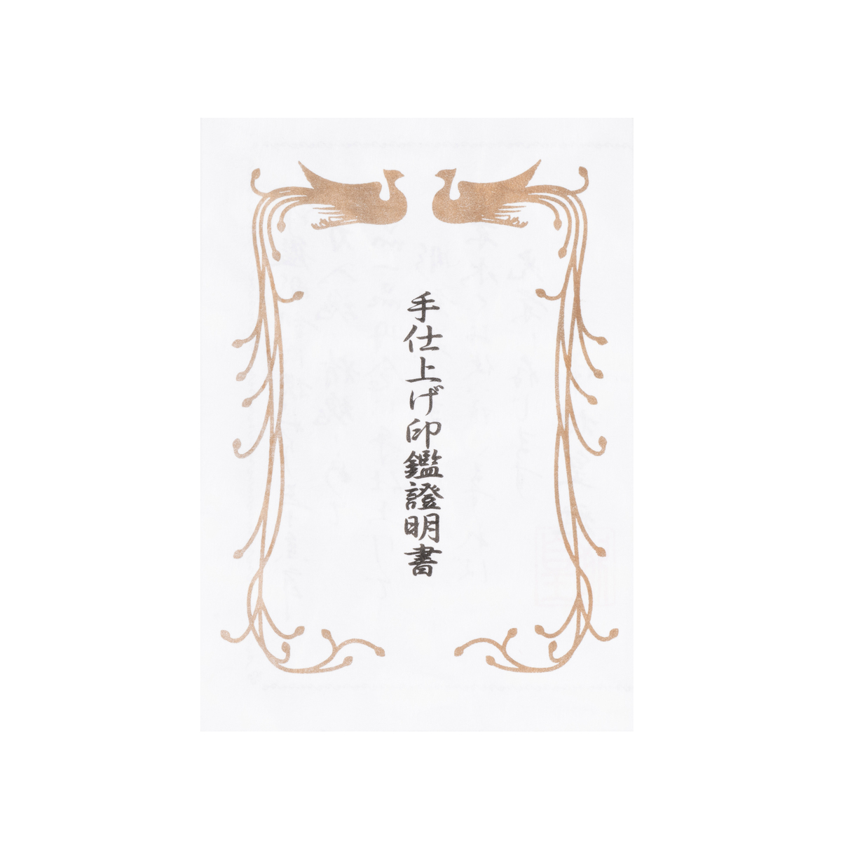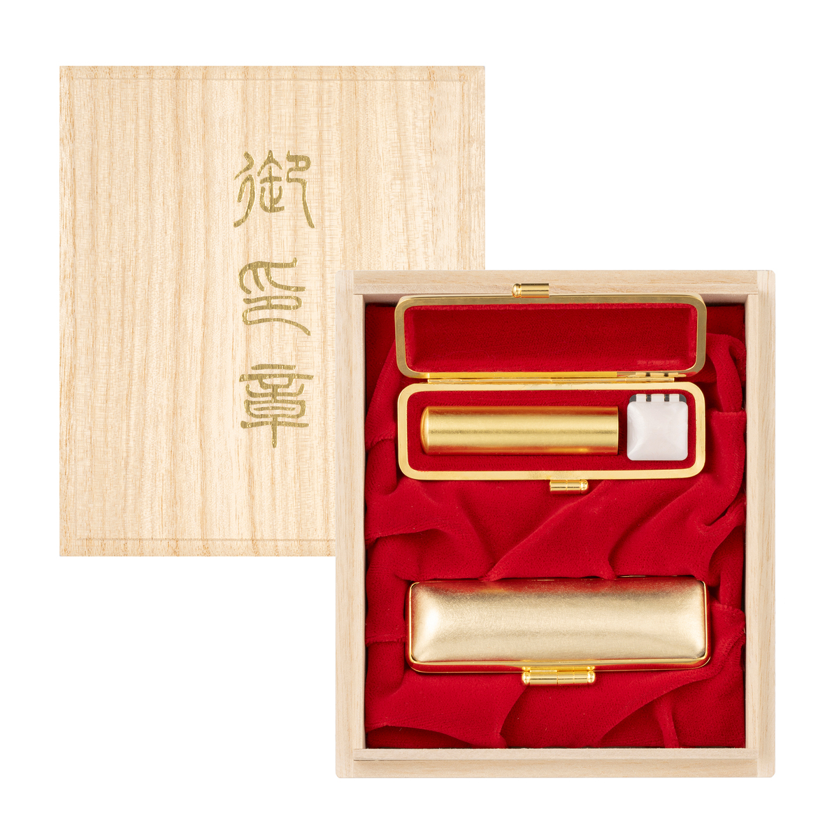 全て厚生労働大臣が定めた試験に合格した1級印章彫刻技能士である中村皇雅氏の工房で彫り上げていきます。それぞれにハードケースが付いており、セットケースは高級感のある桐箱です