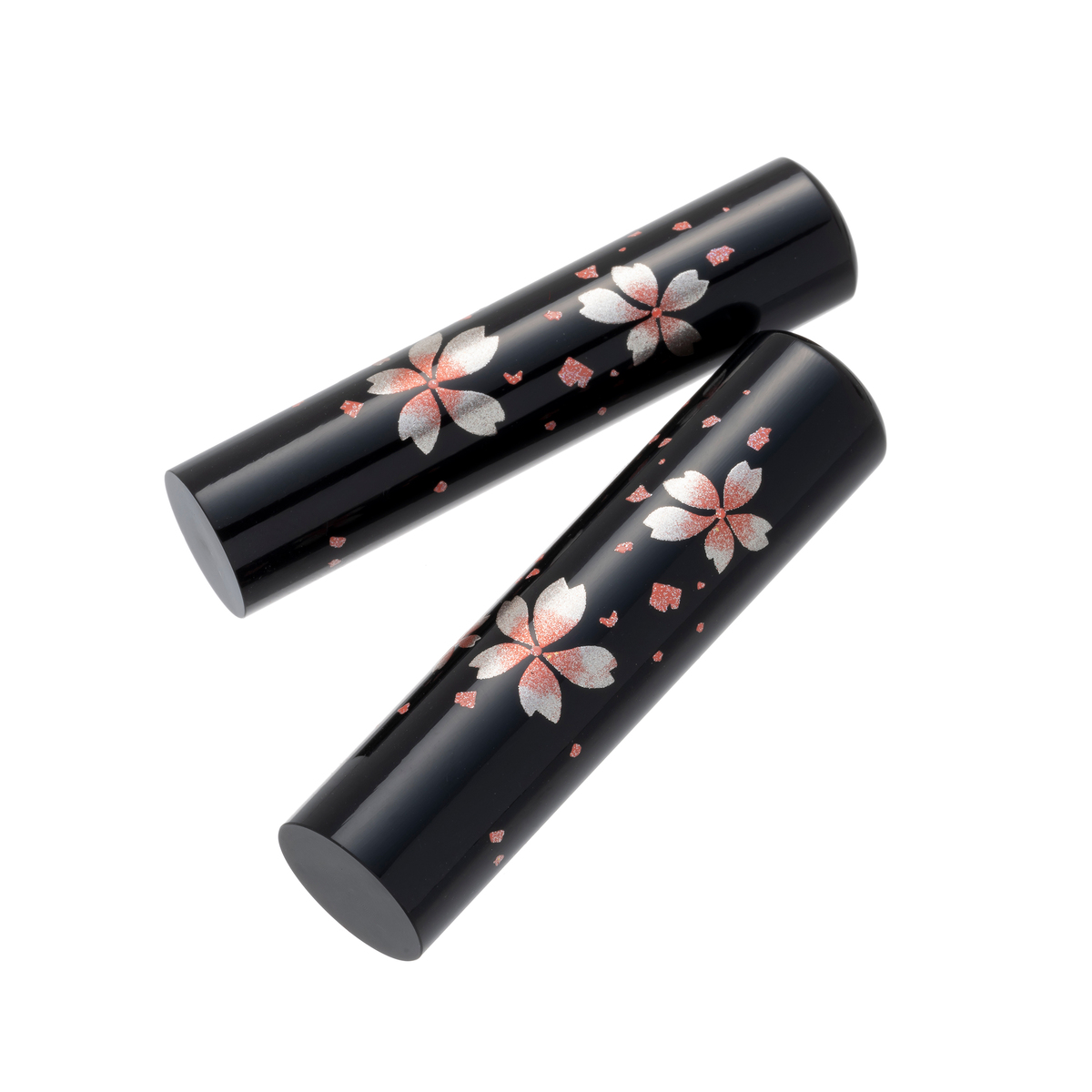 開運八方位 手仕上印鑑2本組黒水牛近代蒔絵