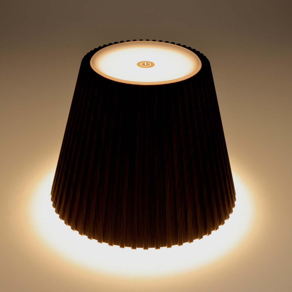 差し込み口は蛇腹状のシリコンゴム素材で、ウイスキーや焼酎など、さまざまなガラス瓶に取り付け可能(*2)。天面のボタンへのタッチ操作で、電源オン/オフと明るさ調節ができます