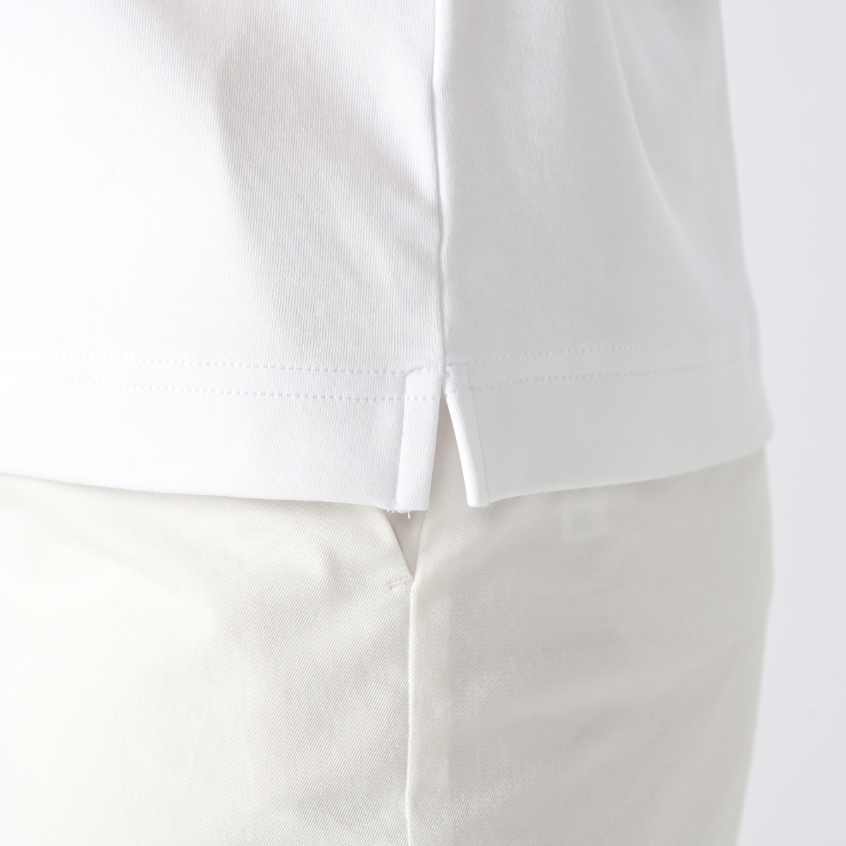 一色ずつ丁寧に重ねた色は、きれいなグラデーションを映し出し、とても繊細な手の込んだプリントです。素材は綿100%で肌触りが良く、ストレッチ性があって着やすいのも魅力。また、毛羽立ちが抑えられ、プリントがきれいに見えるシルケット加工・バイオ加工を施しています