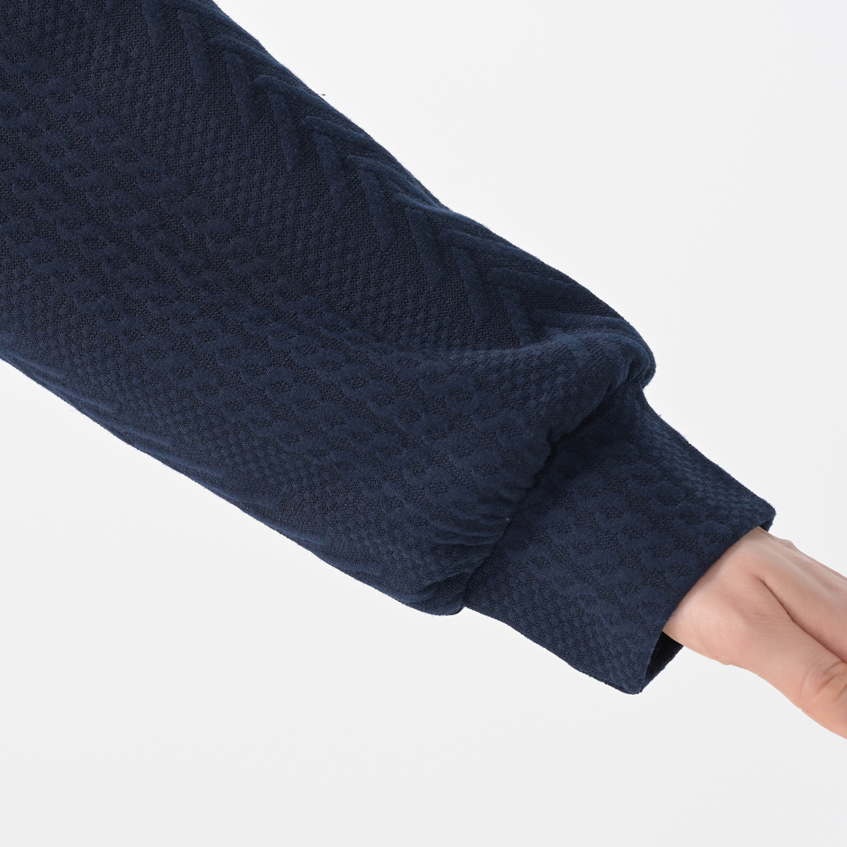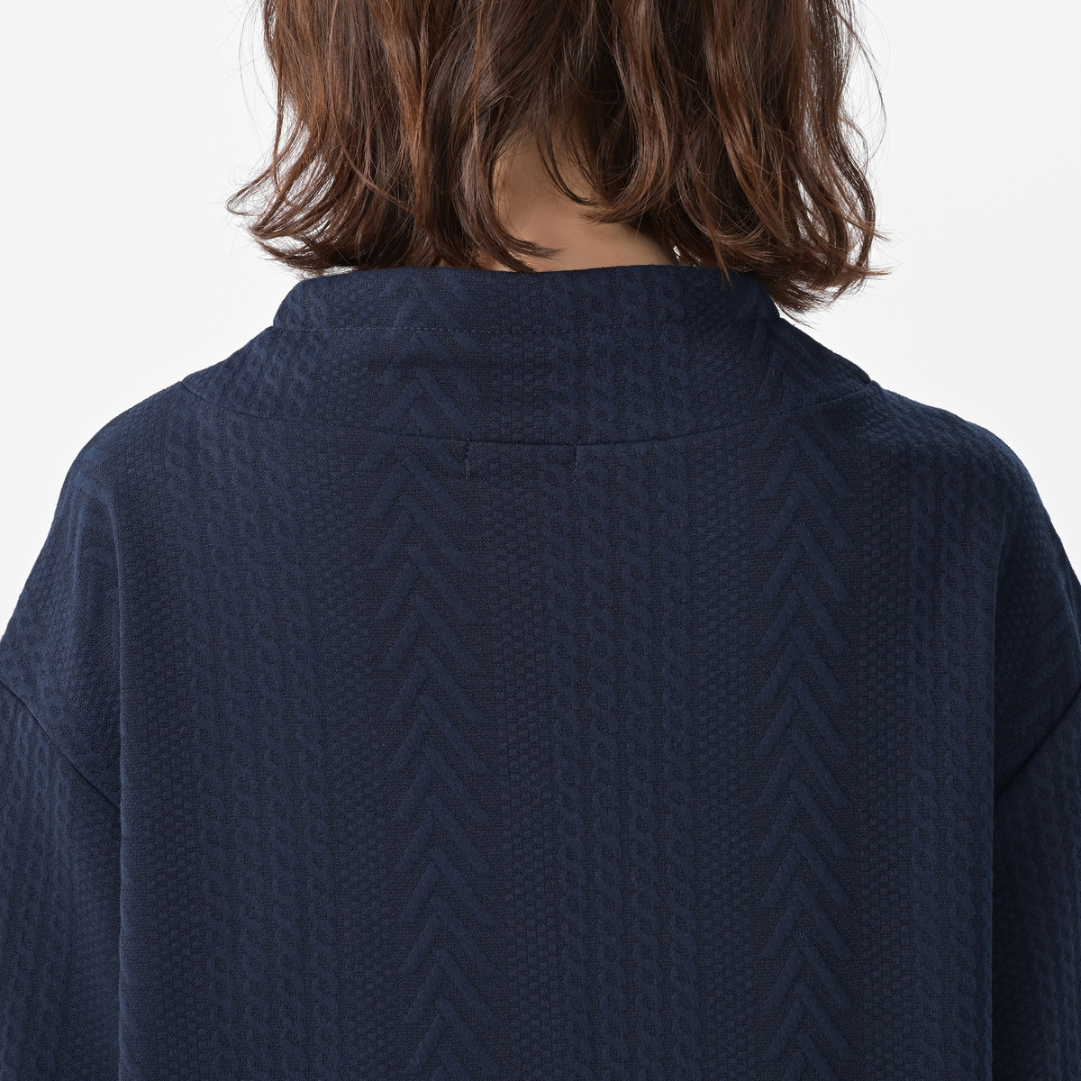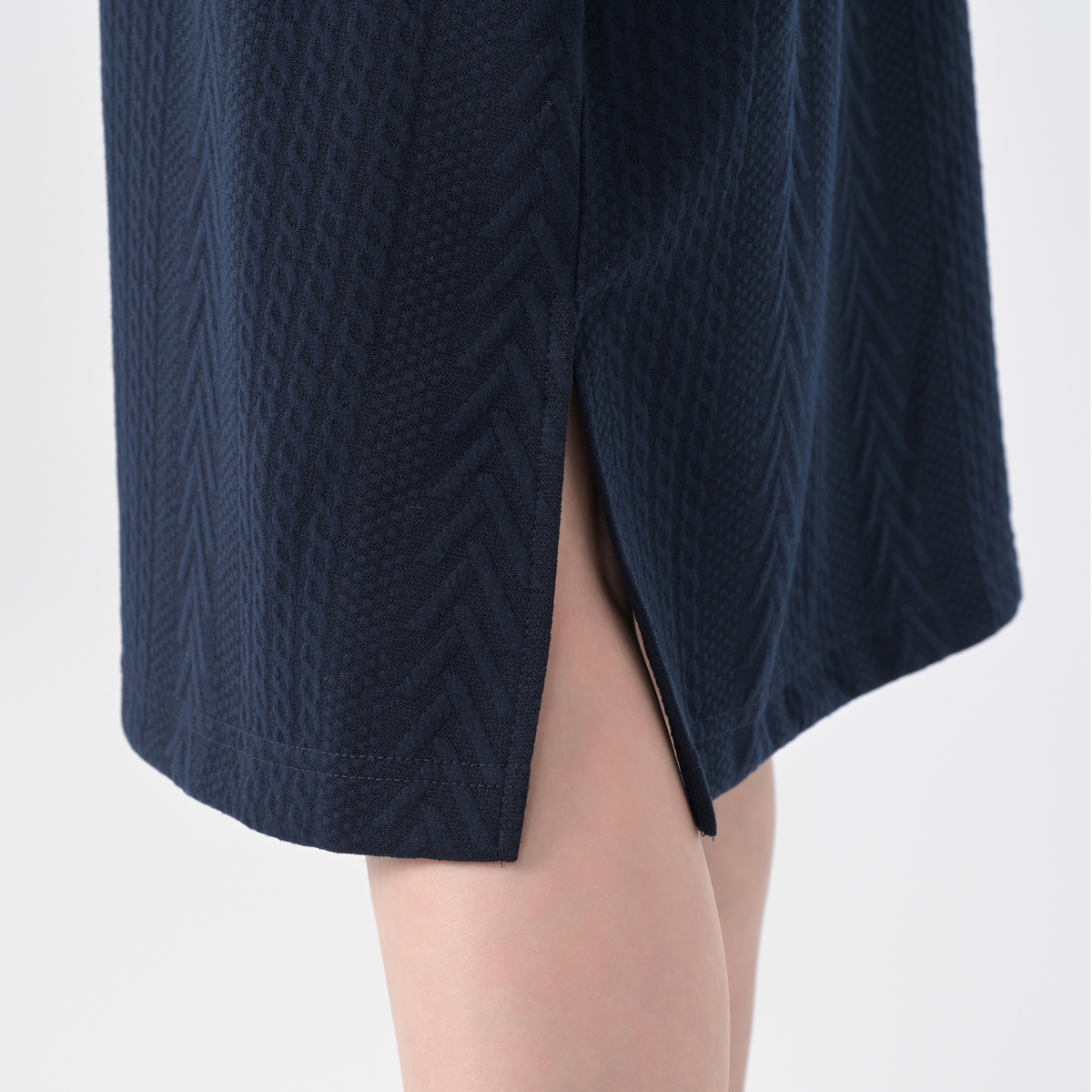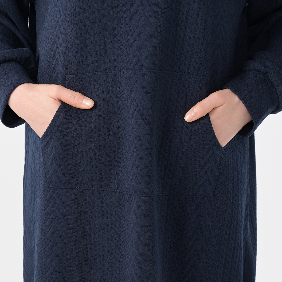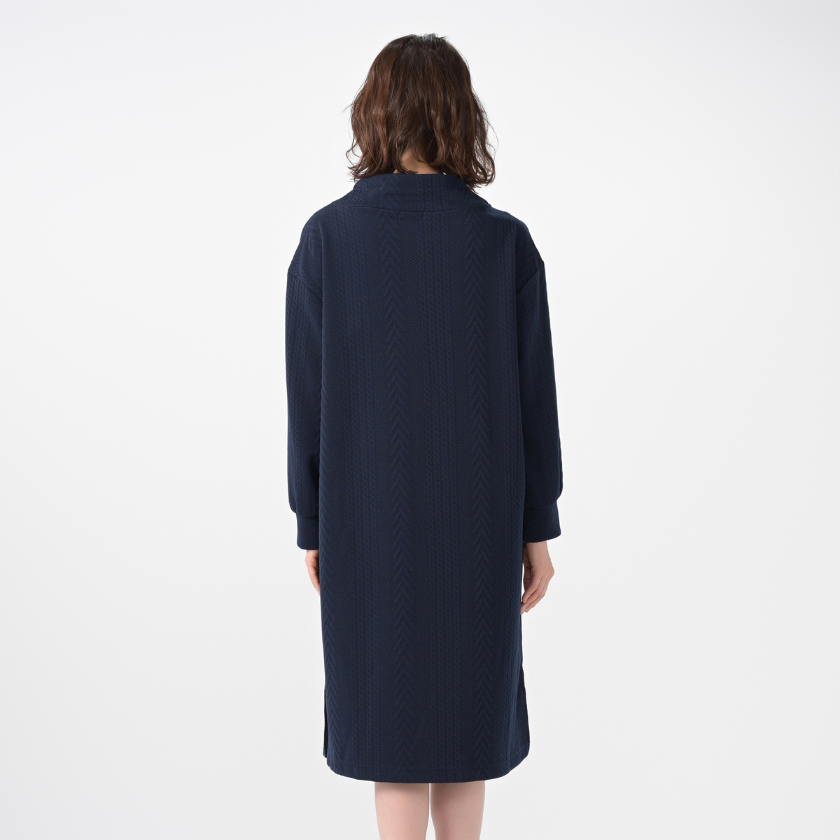 膨らみのあるジャカードのワンピース。ざっくりしたニットのアラン柄をジャカードカットソーで表現した、肉厚で柔らかな着心地です