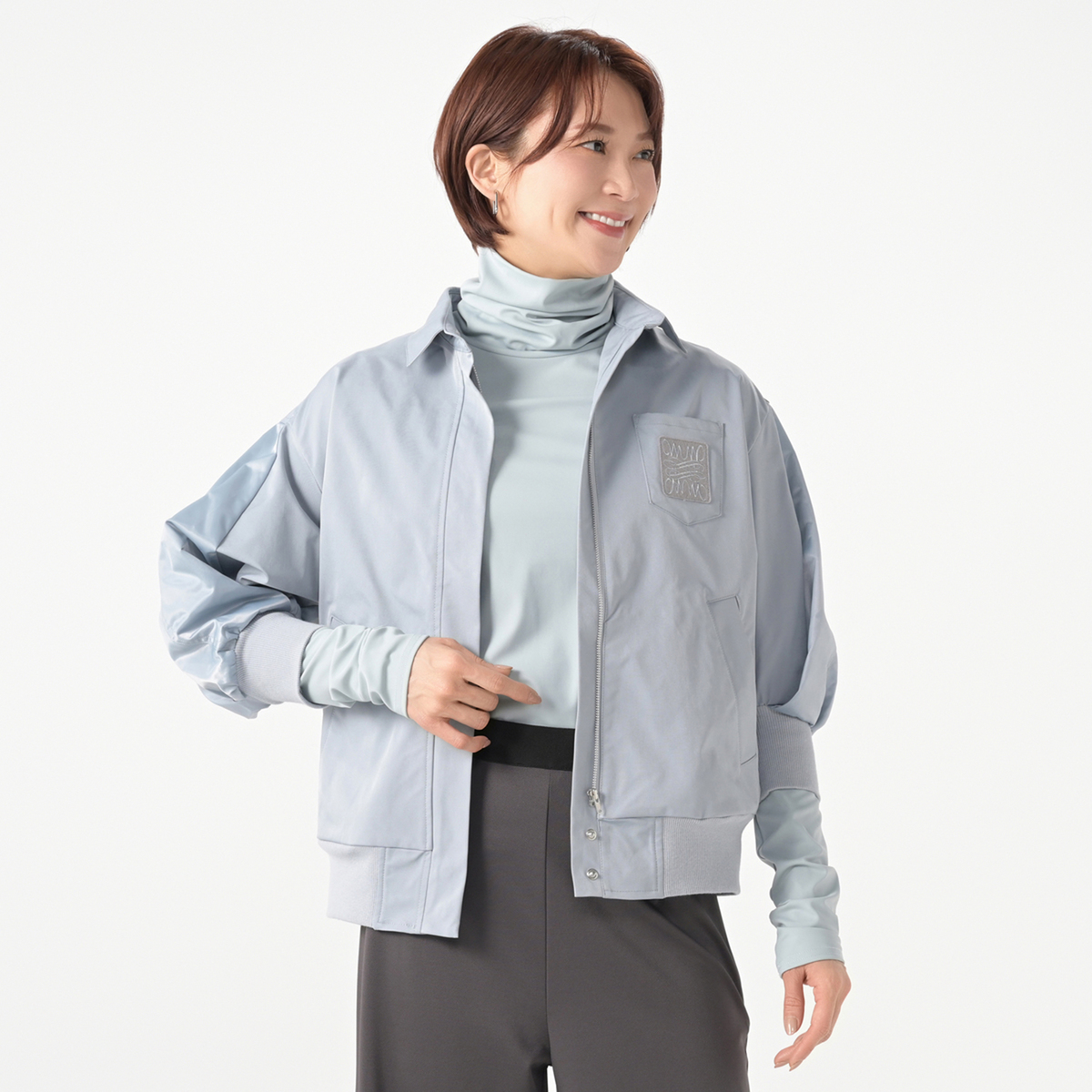 ベーシックなシャツ襟とトレンドを意識した袖丈、ボリュームのある袖と異素材のドッキングが特徴のブルゾンです。胸ポケットには同色のブランドロゴ刺繍が施され、カジュアルにもエレガントにもコーディネート次第で幅広く活用できます。