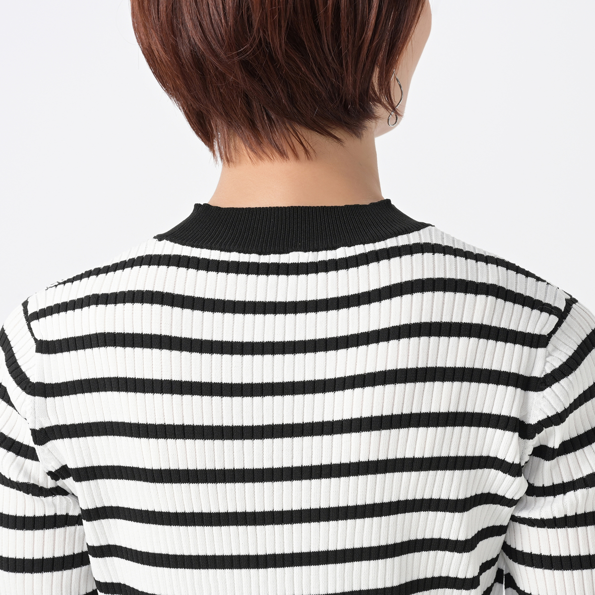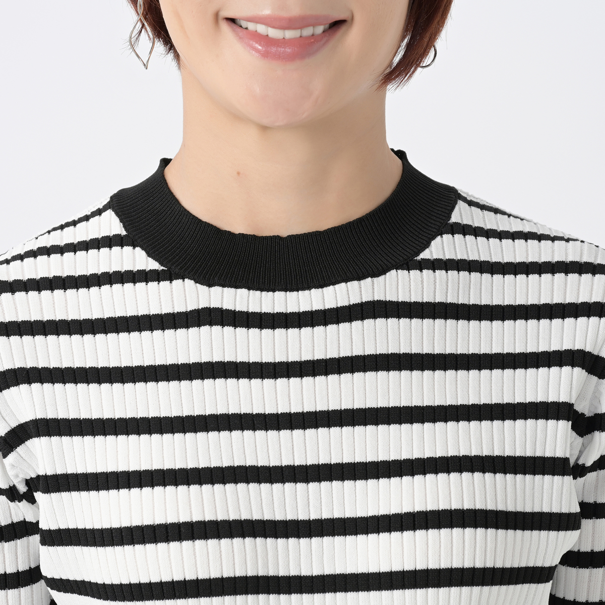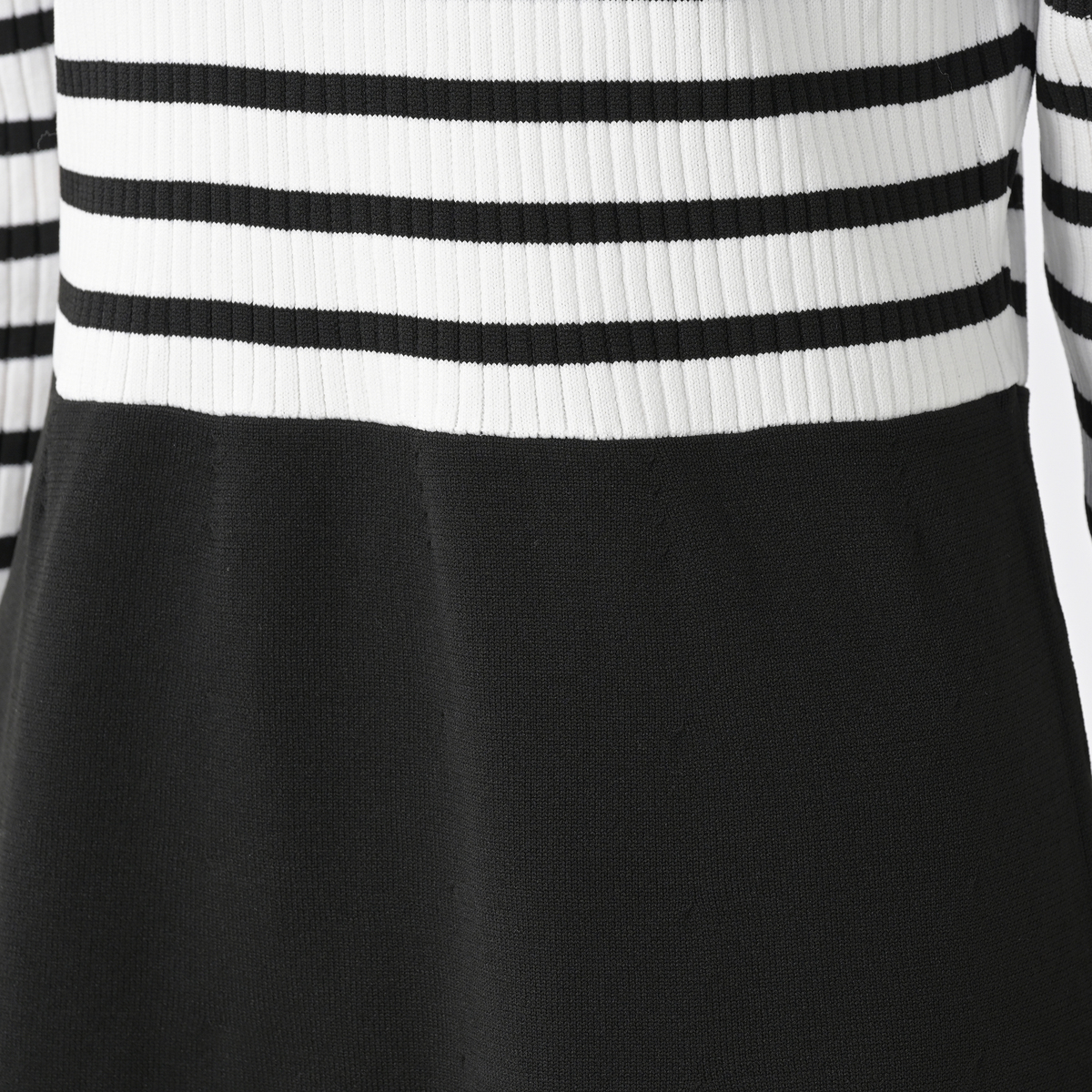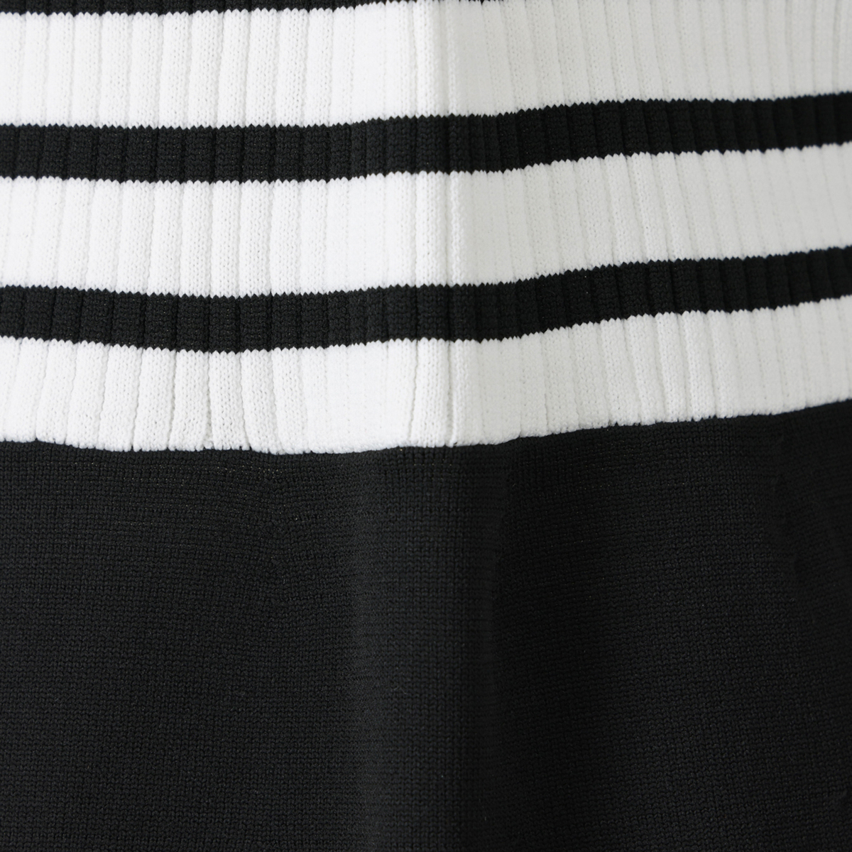 上身頃とスカート部分の編み地を変え、シャープな雰囲気に仕上げたニットワンピース。上身頃はすっきりシルエットのリブハイネックで、ウエストから裾にかけてふんわりとしたAラインが広がる、スレンダー見えするデザインです