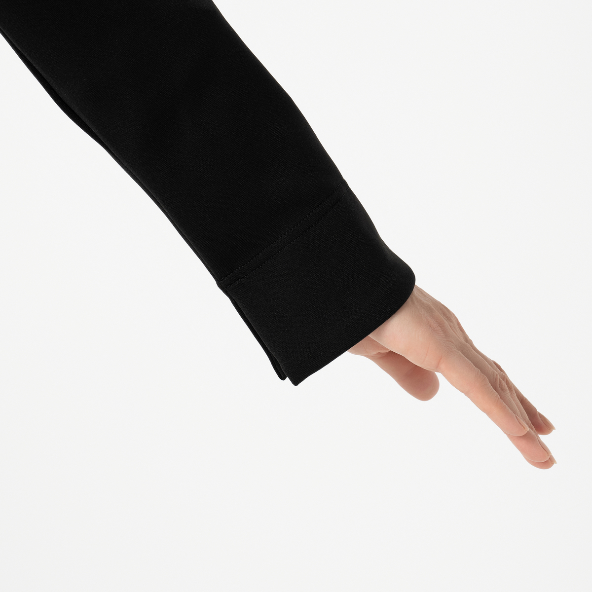 [商品寸法(ヌード寸法)cm] サイズ バスト 着丈 肩幅 袖丈 M: 100(79〜87) 66 37 59 L: 106(85〜93) 67 38 59 LL: 112(91〜99) 68 39 60 [素材] 本体:ポリエステル95% ポリウレタン5% 別布:綿60% ナイロン35% ポリウレタン5% 合皮部分:合成皮革 [お手入れ] 手洗い可 [注意事項] ※商品寸法の誤差は多少発生します。ご了承下さい ※洗濯後は重ね置きしないで下さい ※洗濯後はすぐに脱水し、形を整えて干して下さい。長時間、水につけたままにしないで下さい ※素材の特性上、着用や洗濯・クリーニング時の摩擦により毛羽立ち、毛玉が発生します。その際はお早めに毛玉取り器等で手入れをして下さい ※直射日光や蛍光灯の影響で変色することがありますのでご了承下さい ※濃色製品は着用中の摩擦により色移りすることがあります。また、雨や汗等で濡れた状態で着用すると色移りすることがあります。その際はお早めに洗濯をして下さい ※洗濯やクリーニングにより徐々に色あせします。また、色落ちすることがありますので、他の物と分けて洗って下さい ※付属部分にアイロンを当てないで下さい ※雨や水に濡れた時は、ただちに乾いたタオル等で押さえ取り、こすらずふき取るようにして下さい ※合成皮革は時間の経過と共に劣化が起こる可能性があります ※高温高湿を避け、直射日光の当たらない風通しのよい場所で保管して下さい 【中国製】