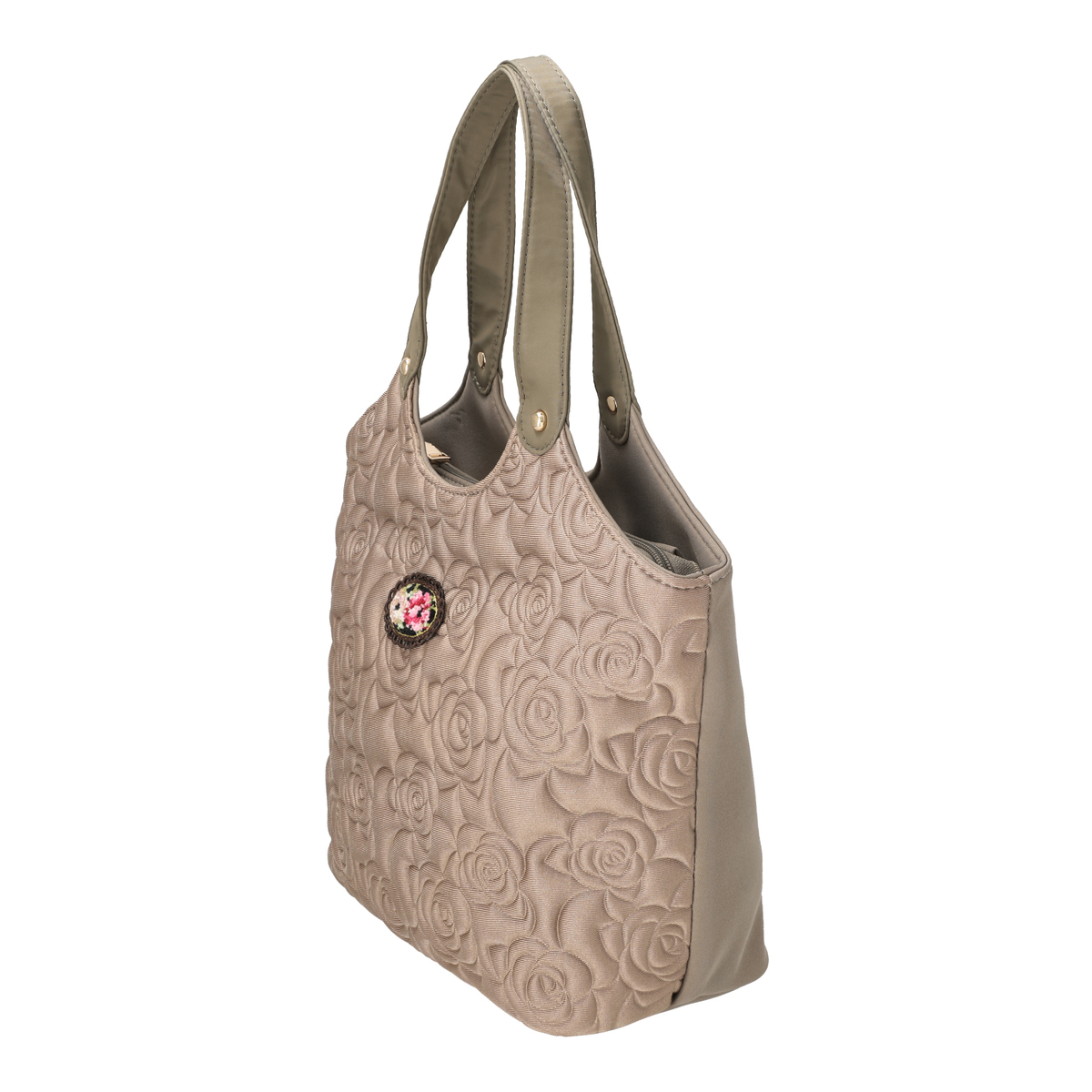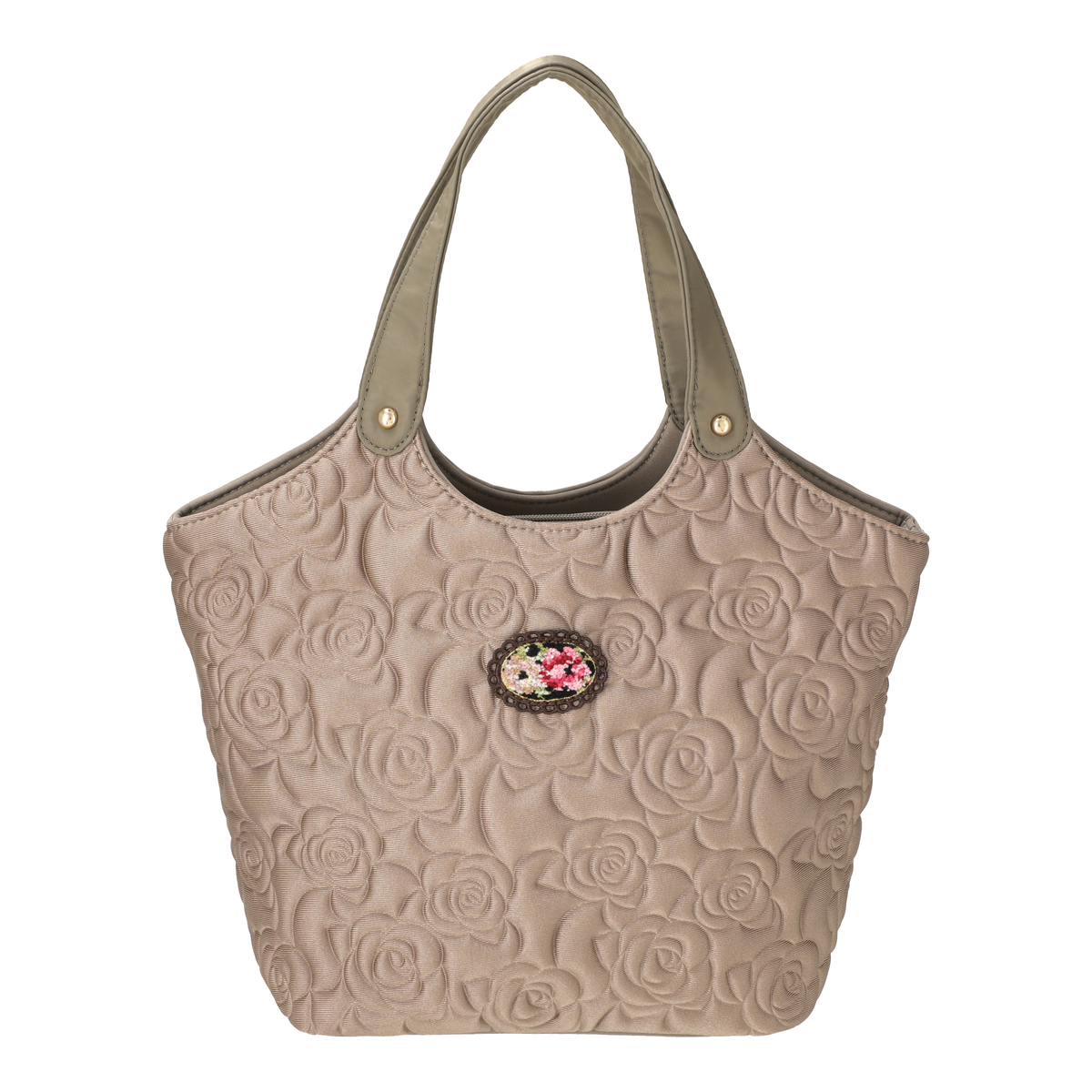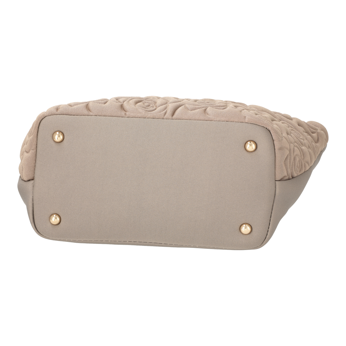 正面に長年の伝統が培われたシェニール織の生地を使用し、花柄の発色が鮮やかに表現されています。表地部分はオリジナルのローズ柄の型押しの生地で、高級感のある風合いです
