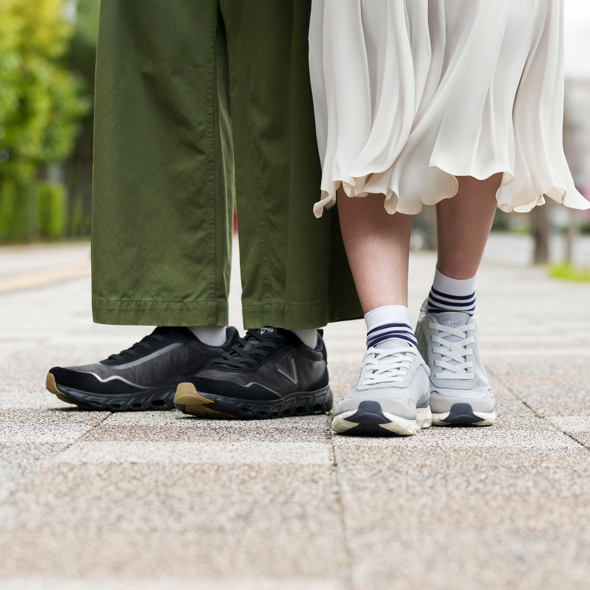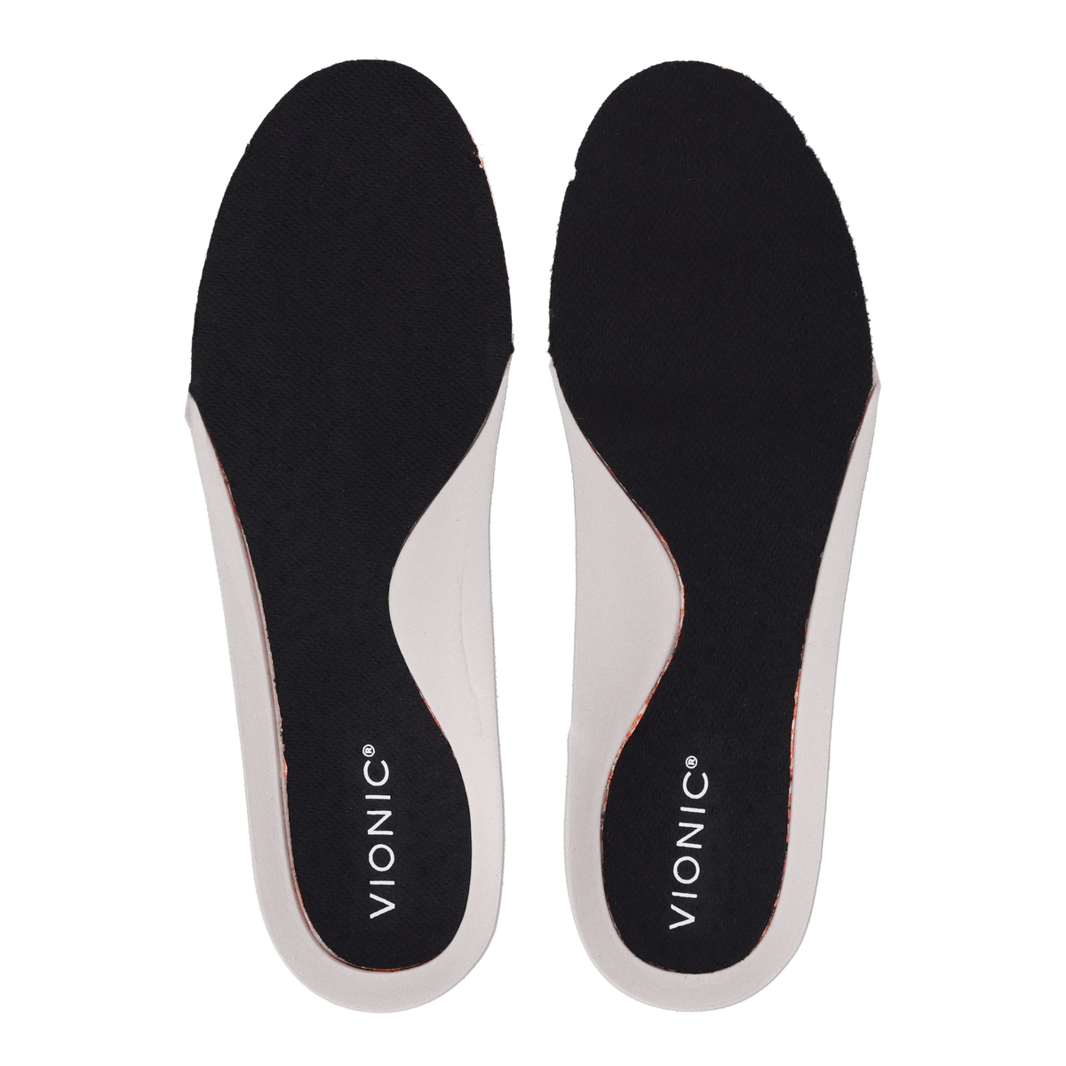 インソールには足裏部分に掛かる負担や疲労を軽減するように設計された、VIO-FLEXフットベッドを採用。オレンジ色のパーツは通気性のある肌触りの良い生地で肌に当たる部分を覆い、靴内部の湿気をコントロール。硬めのグレー色のパーツはアーチサポートと安定性に優れています