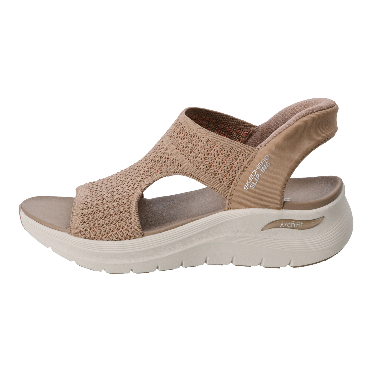 快適な履き心地が魅力のスケッチャーズ アーチフィットシリーズのサンダル。サポート力とクッション性を備えたアーチフィットシステムは、足の形にあった形状をし、アーチをサポート。足の疲れを軽減します。またインソールとアウトソールの構造がスニーカーの構造を踏襲しているため、足の微細な動きに合いフィット感に優れています