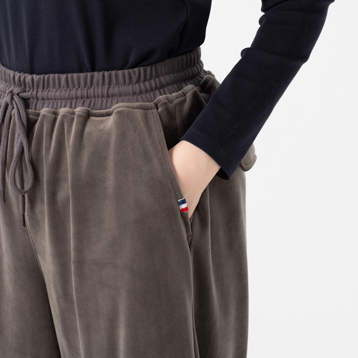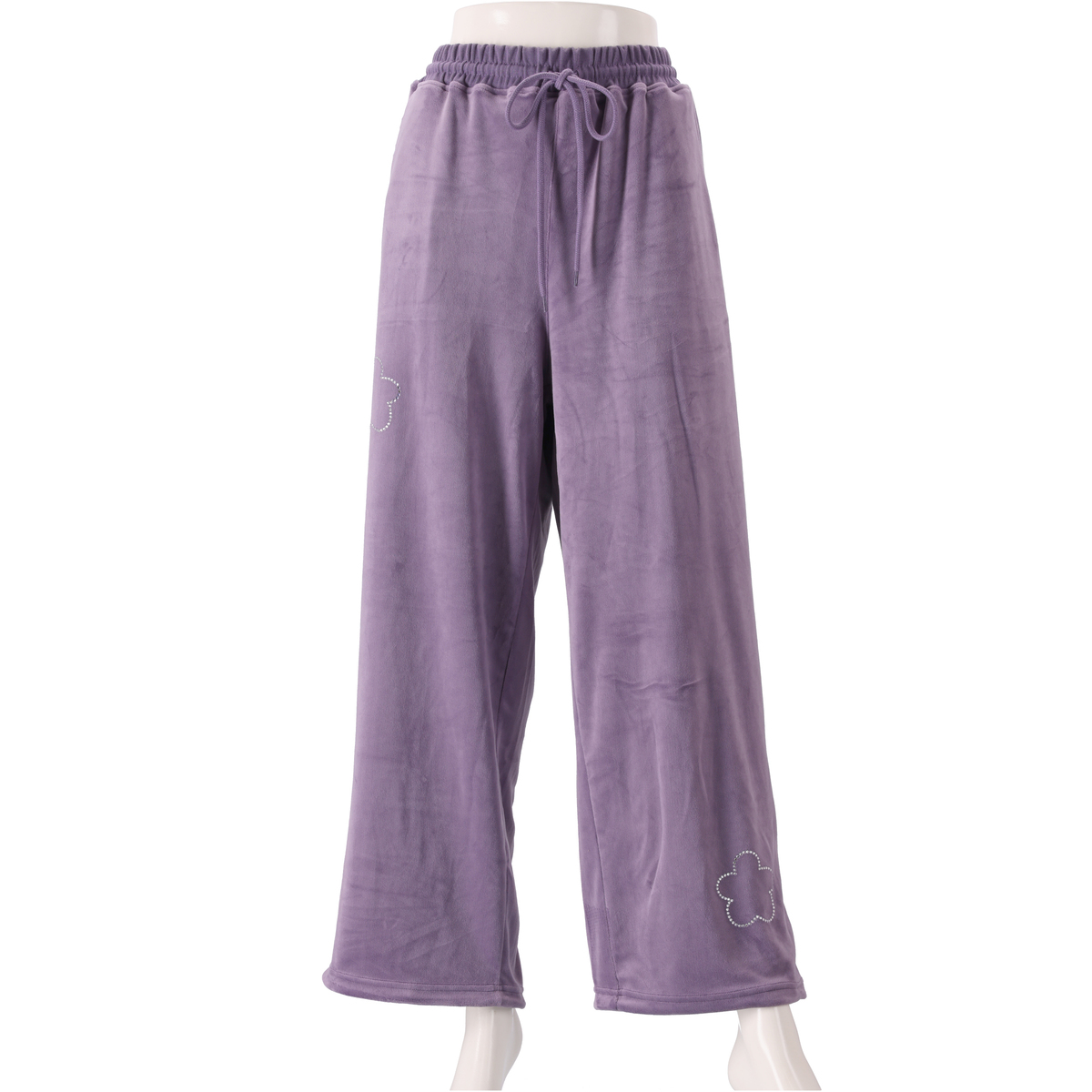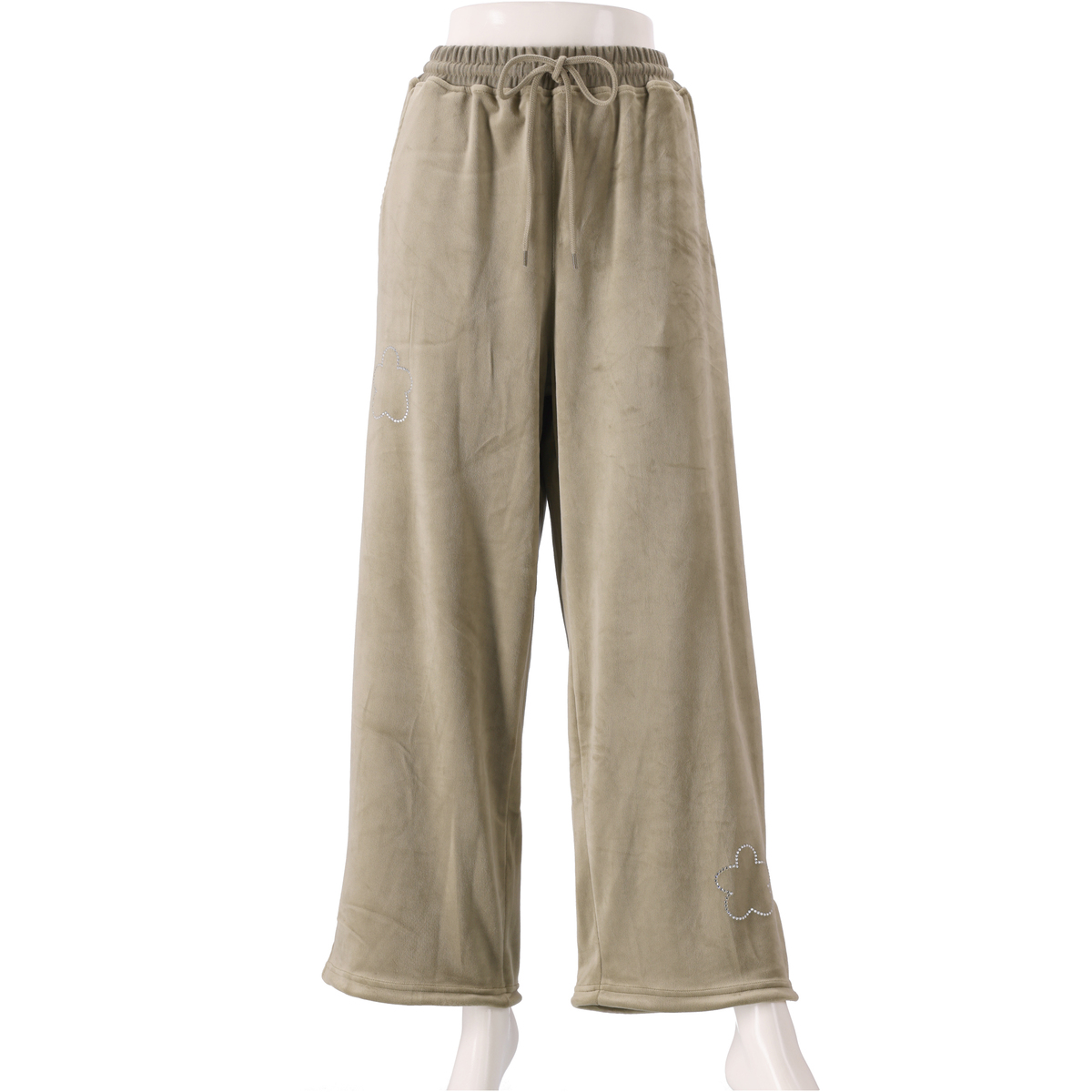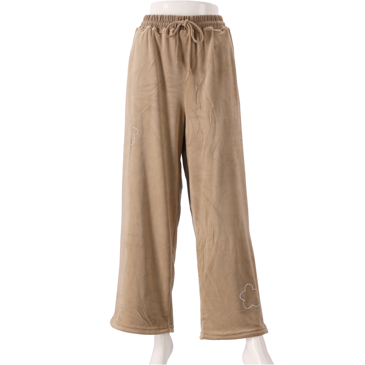 艶やかな光沢感のあるベロア素材を使用したパンツ。ストレートワイドシルエットで、リラクシングな雰囲気を演出します