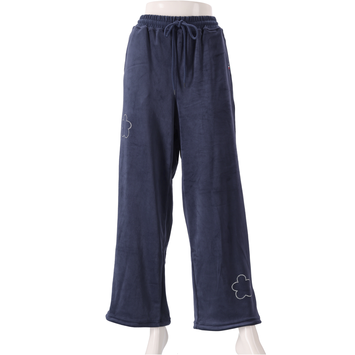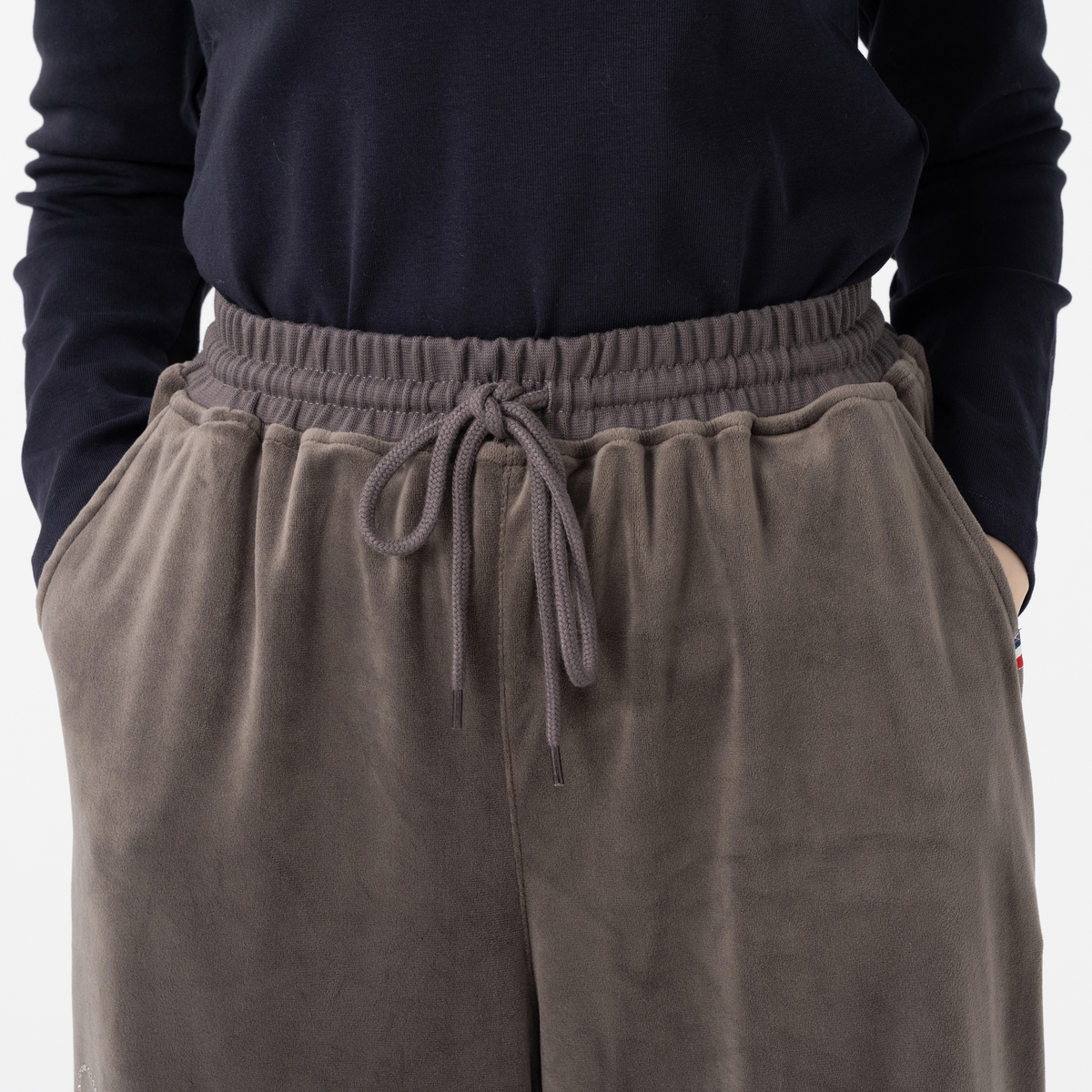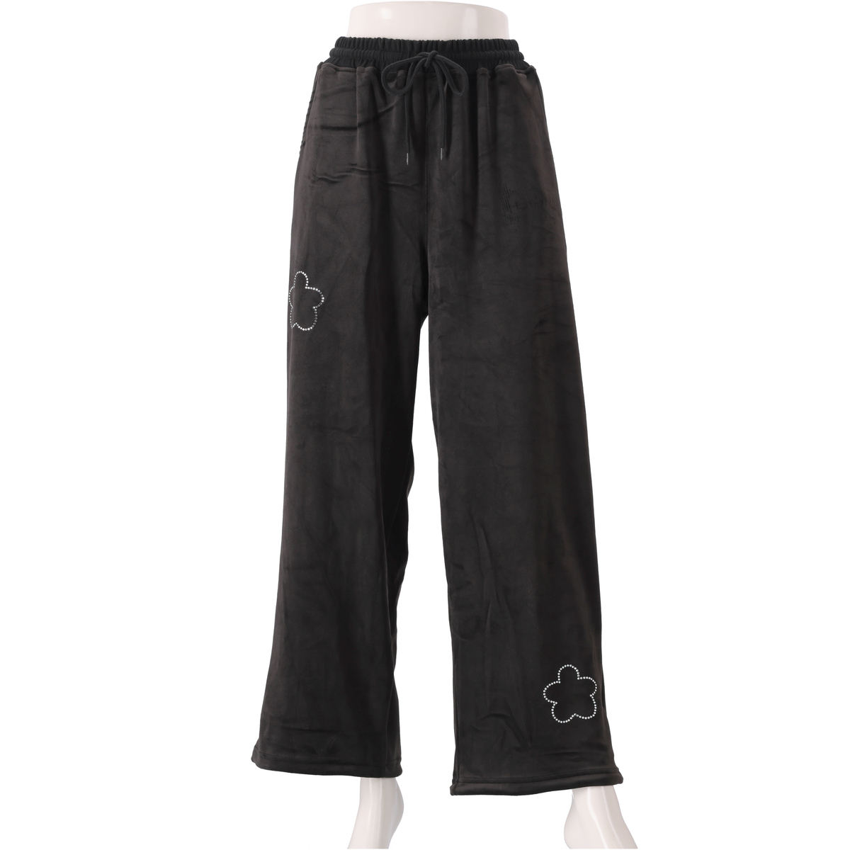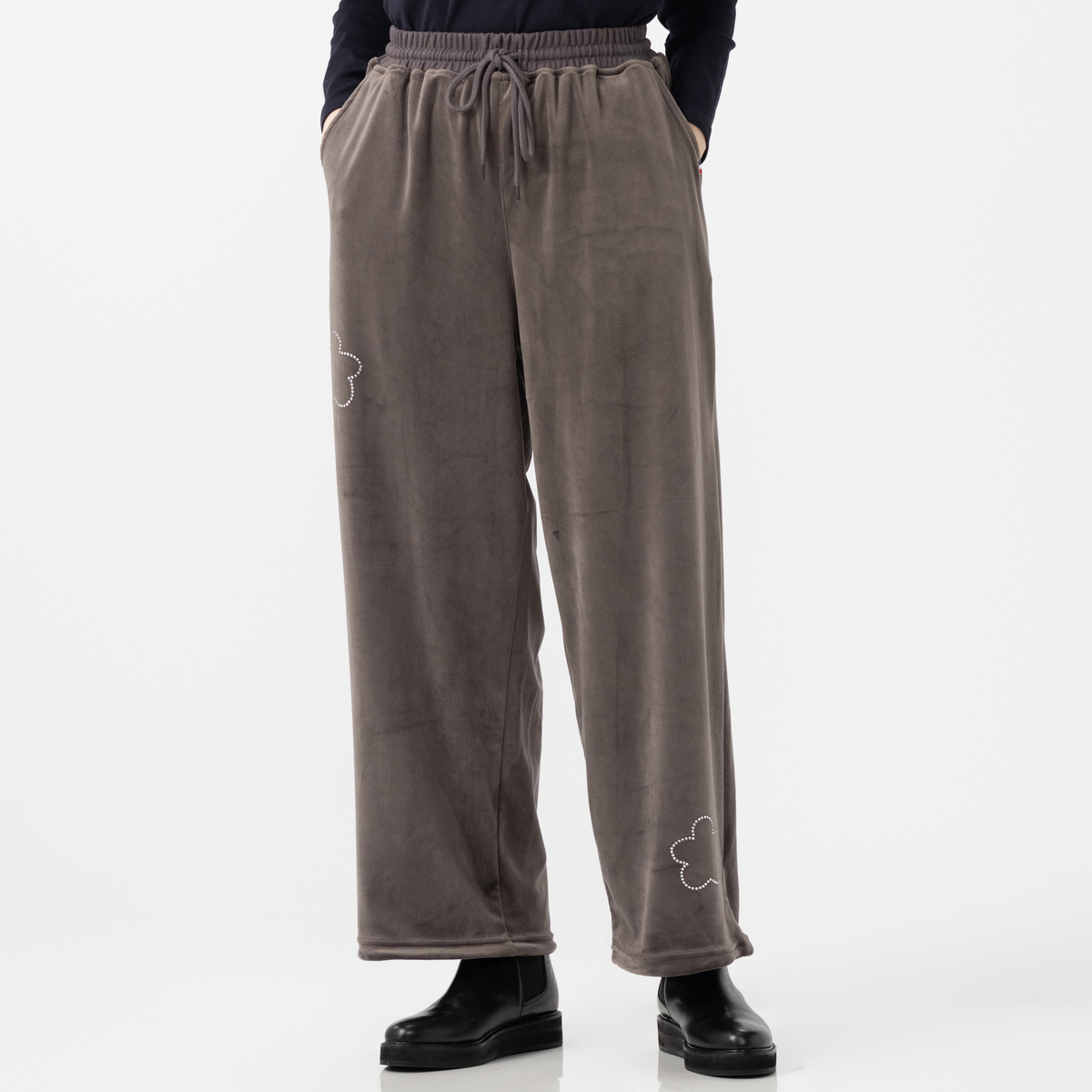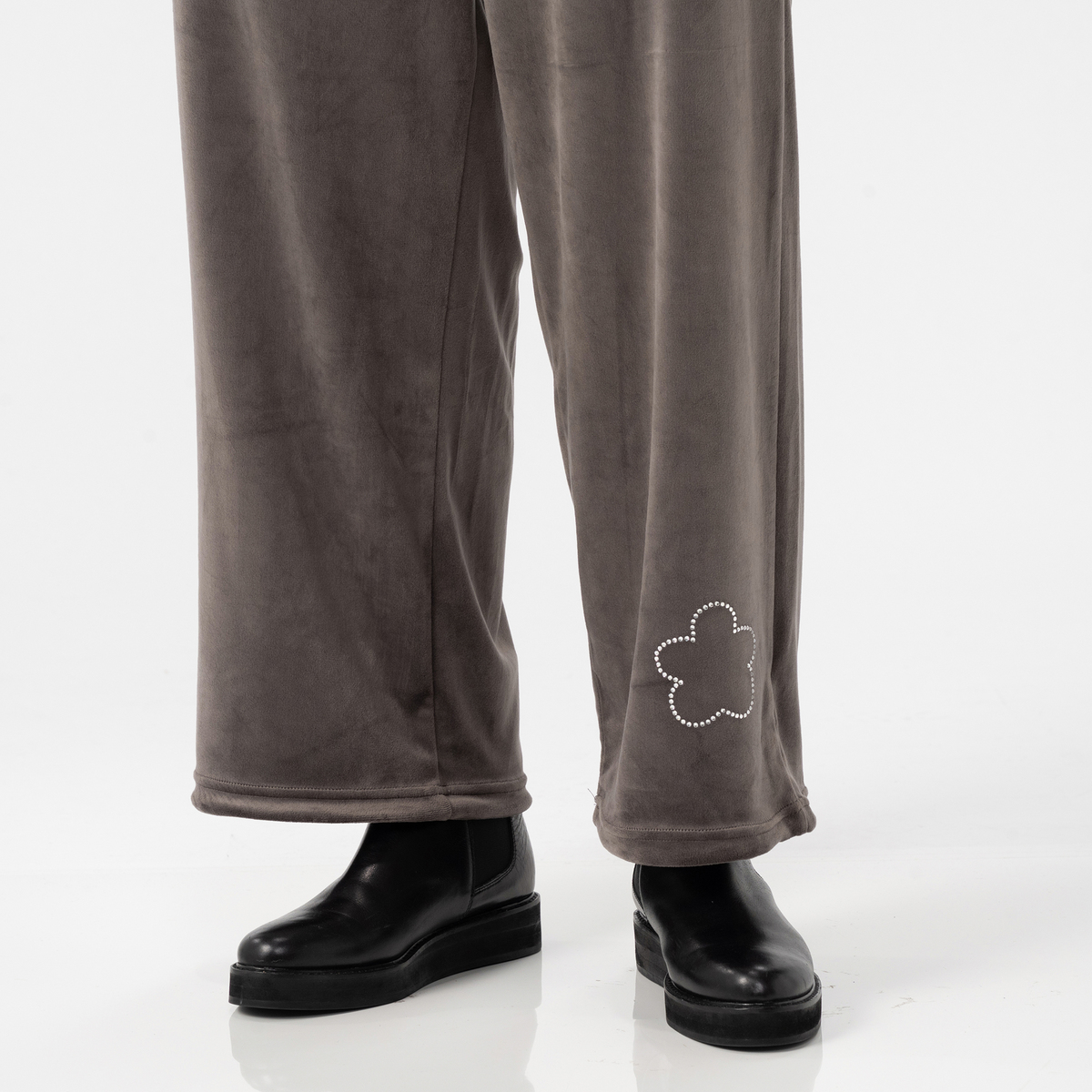 艶やかな光沢感のあるベロア素材を使用したパンツ。ストレートワイドシルエットで、リラクシングな雰囲気を演出します