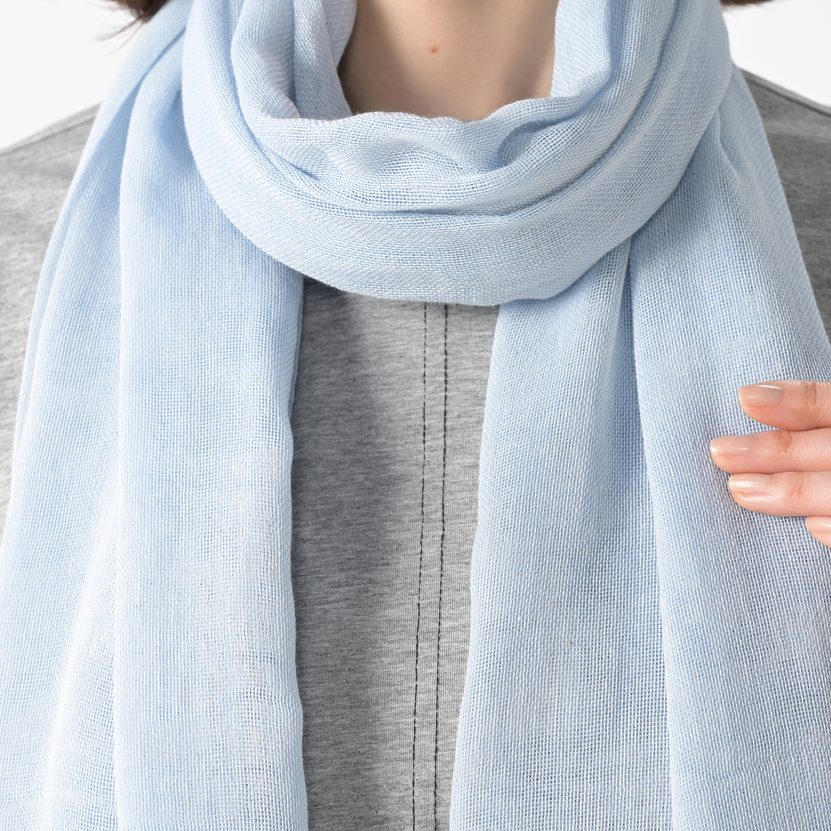 繊細で軽く、やわらかな肌触りの大判ストール。ボリューム感もあり、様々なアレンジもお楽しみいただけます