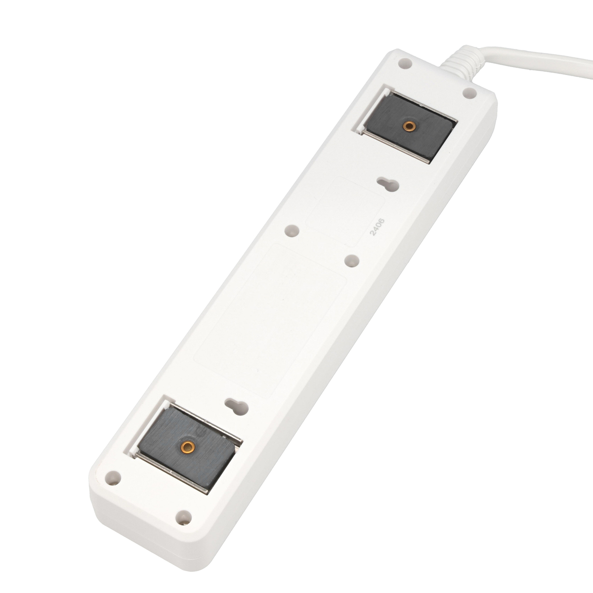 雷ガード搭載で落雷により電線から伝わる雷サージを低減*。プラグ部にはトラッキング防止の樹脂カバー付きで、タップ差し込み部分にゴミやホコリの侵入防止のシャッターがあります。裏面にはスチールデスク等に固定できる強力マグネット付きです