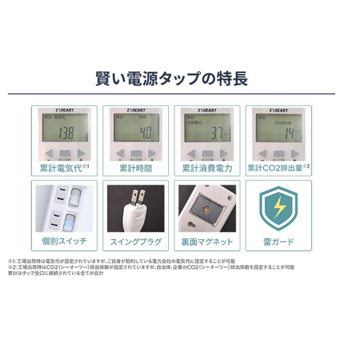 電気代が見える 賢く節電 電源タップ2m 4個口