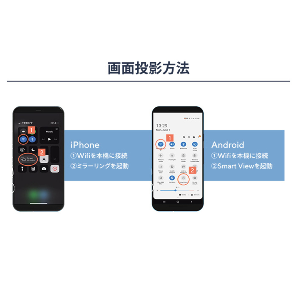 ソフトのインストールは不要で、端末内蔵のキャスト機能(Miracst、AirPlay、googlecast)に対応しています**