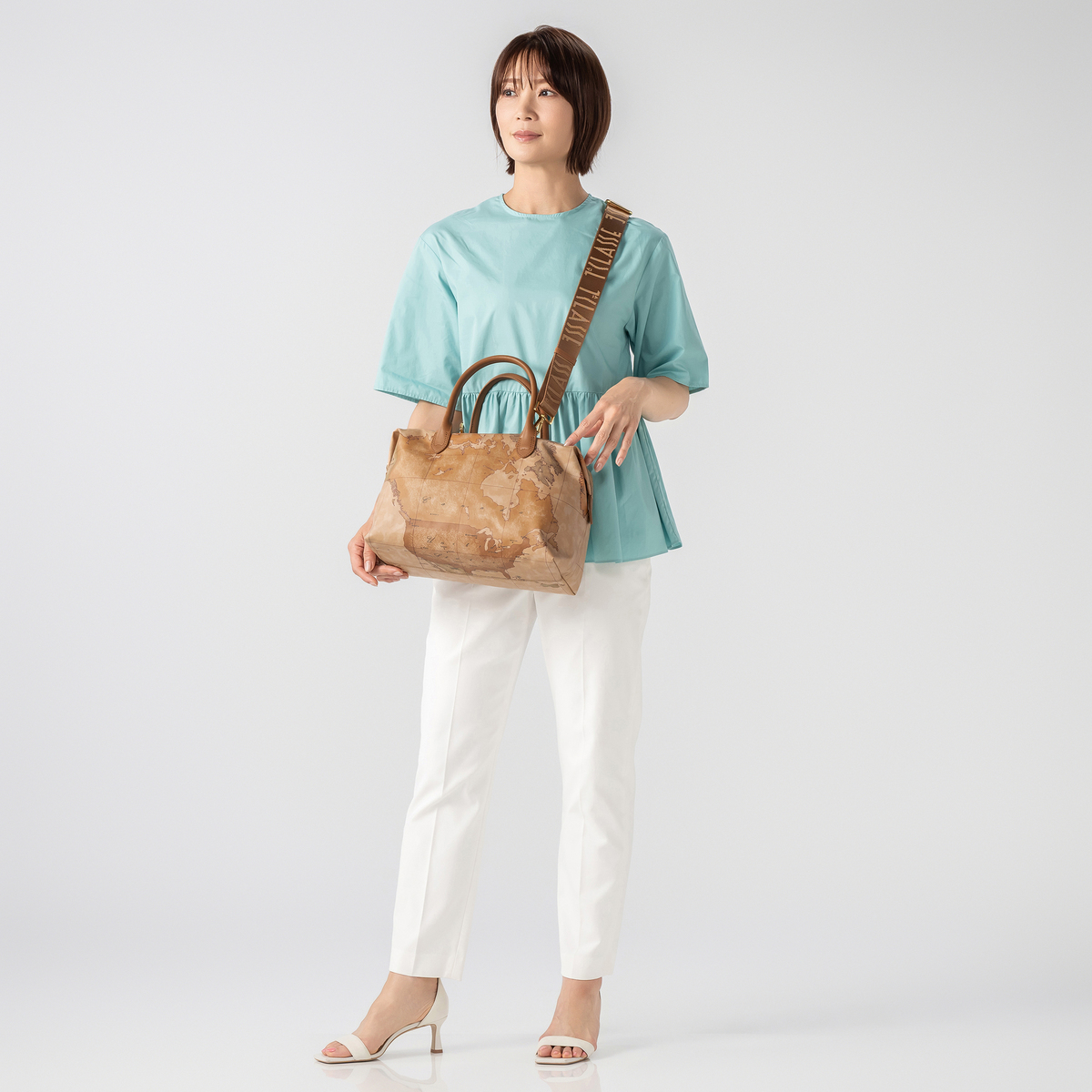 1991年に創立したイタリアのバッグブランド「プリマクラッセ」の2WAYハンドバッグ。ブランドの代名詞であるセピア調の地図柄プリントが特徴です。作品の全てが手作業によって作られていることから同じ柄は二つと存在せず、オンリーワンの雰囲気をお楽しみいただけます