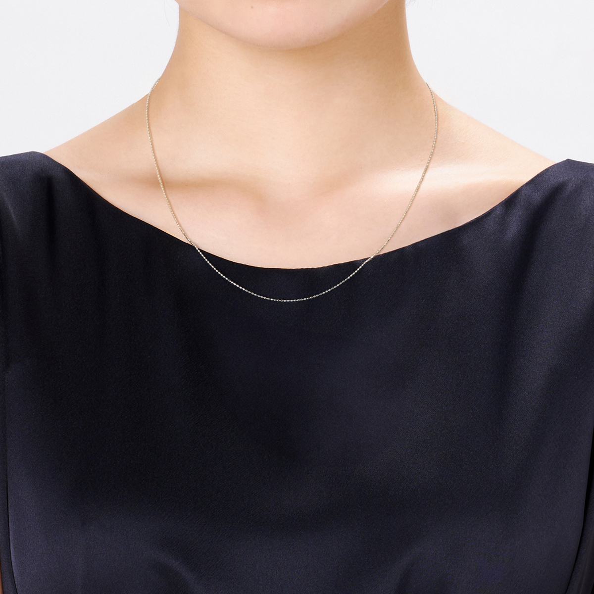 一つ一つカットしたボールのチェーンネックレス。煌めきを放ち、お手持ちのペンダントヘッドを通しても、シンプルに単体使いでも胸元を華やかに演出してくれます