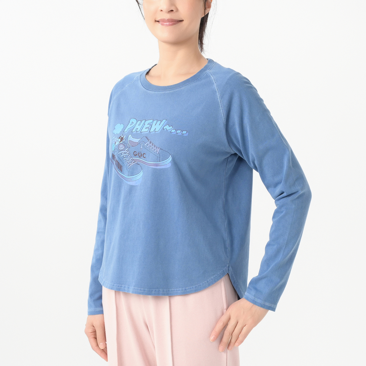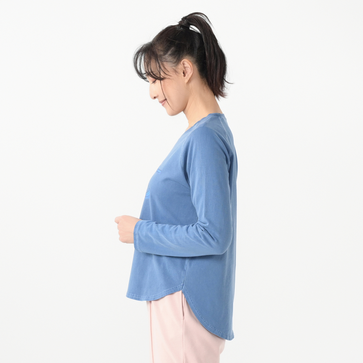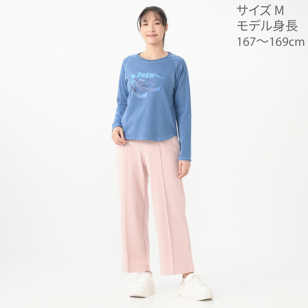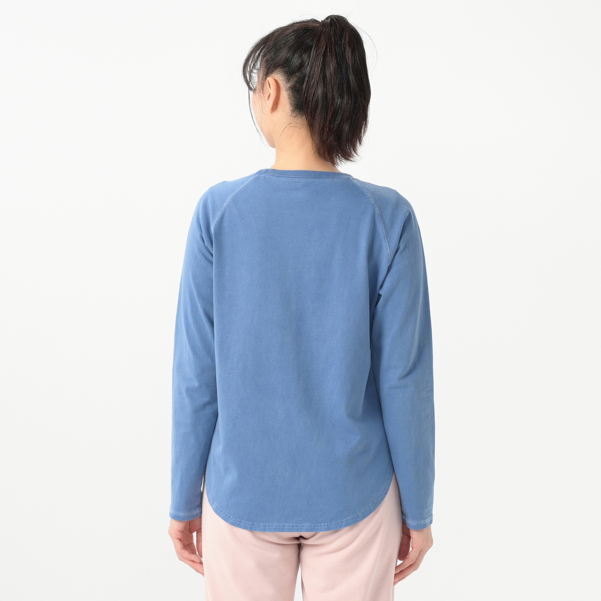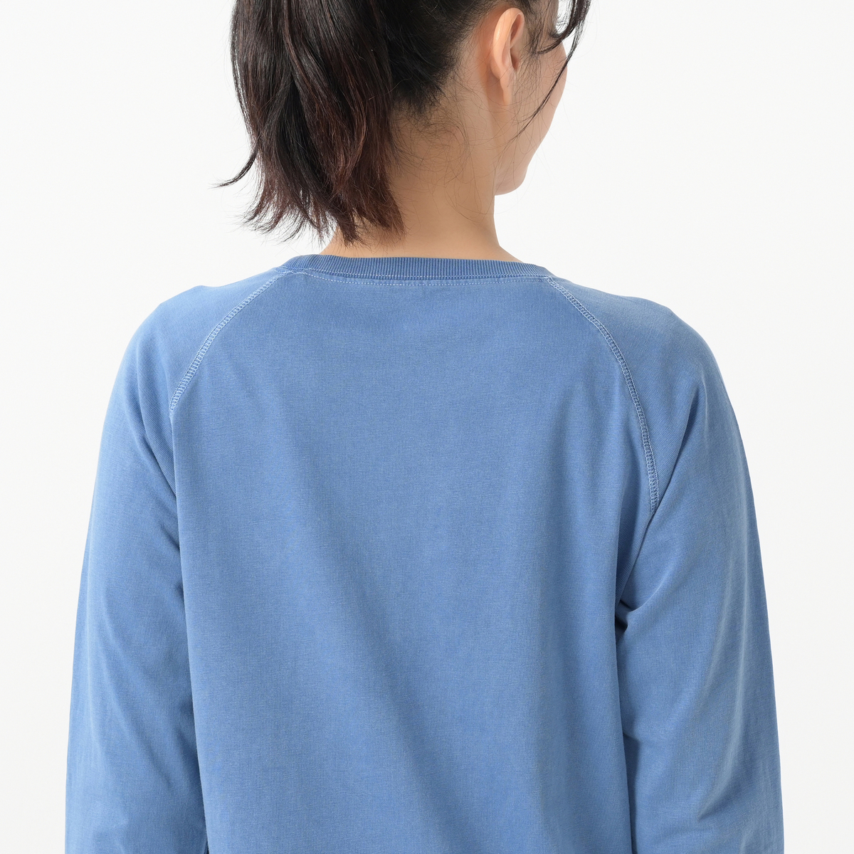 ラグランスリーブのリラックス感のあるシルエットで、裾は前後差をつけたラウンドヘム。ジャストサイズなのでブルゾンやシャツを羽織っても袖まわりがもたつくことなく、こなれ感を演出しやすいアイテムです