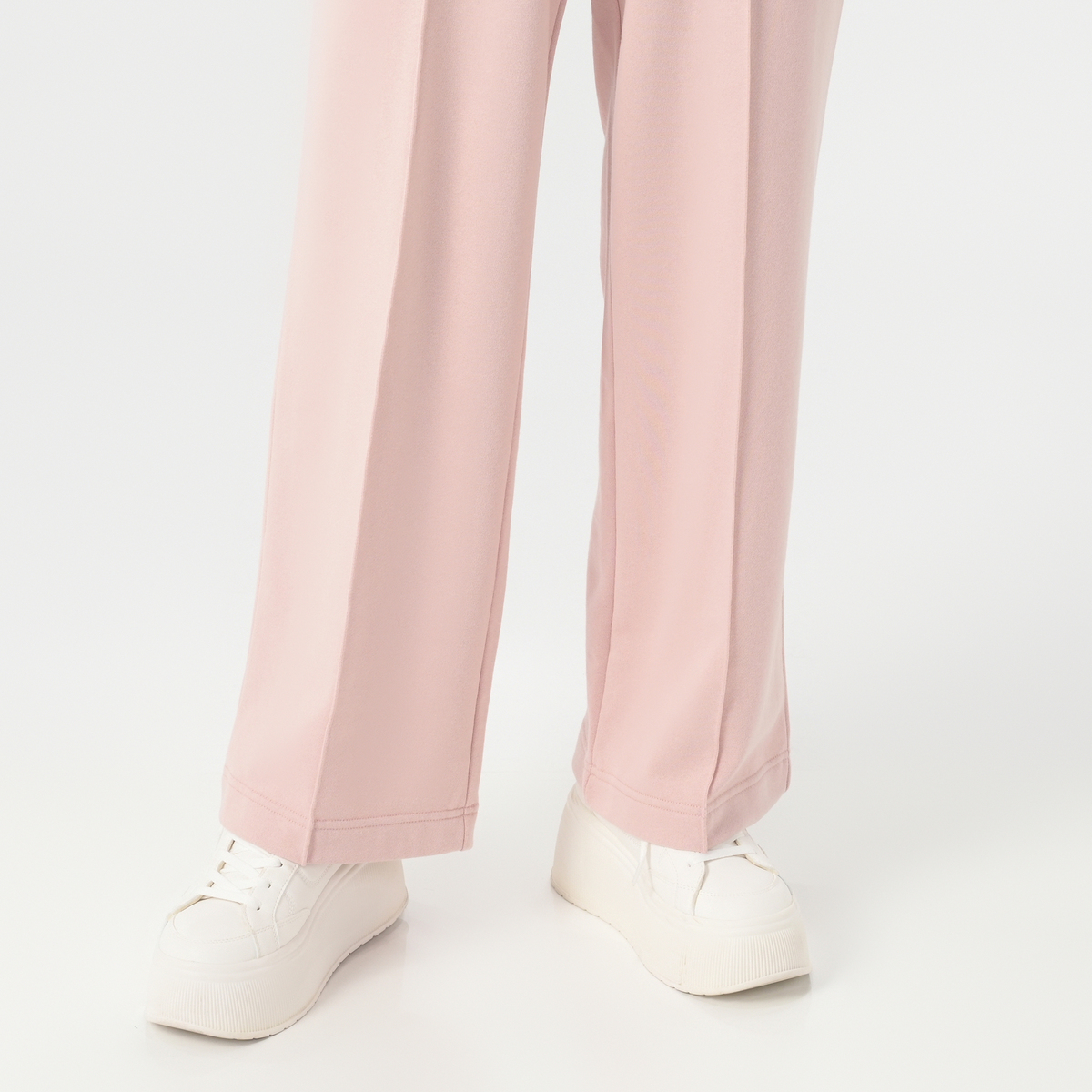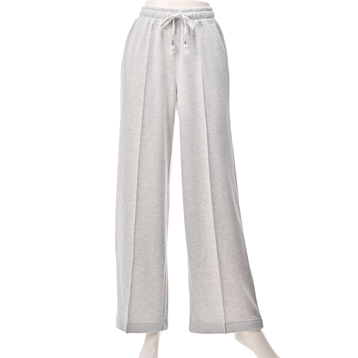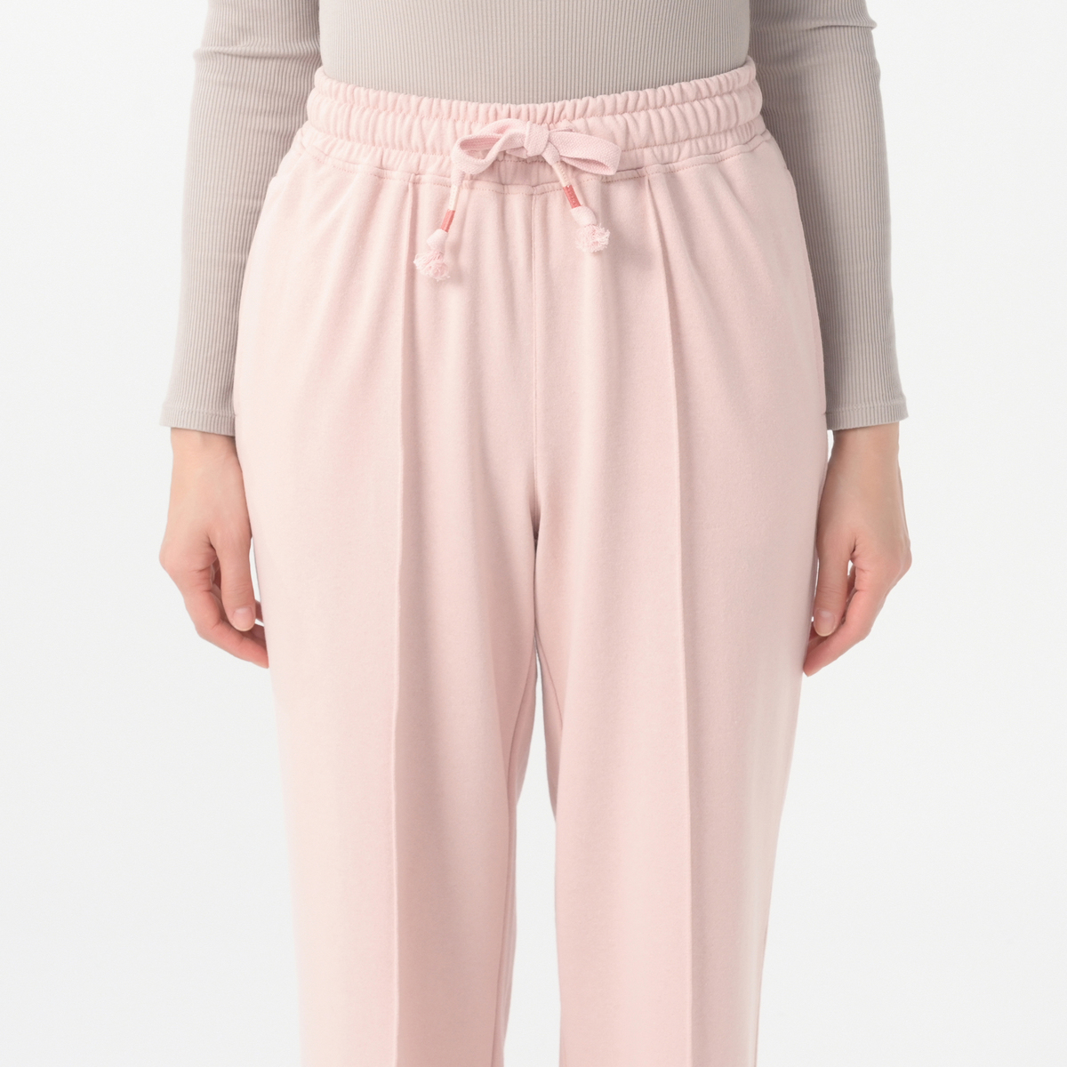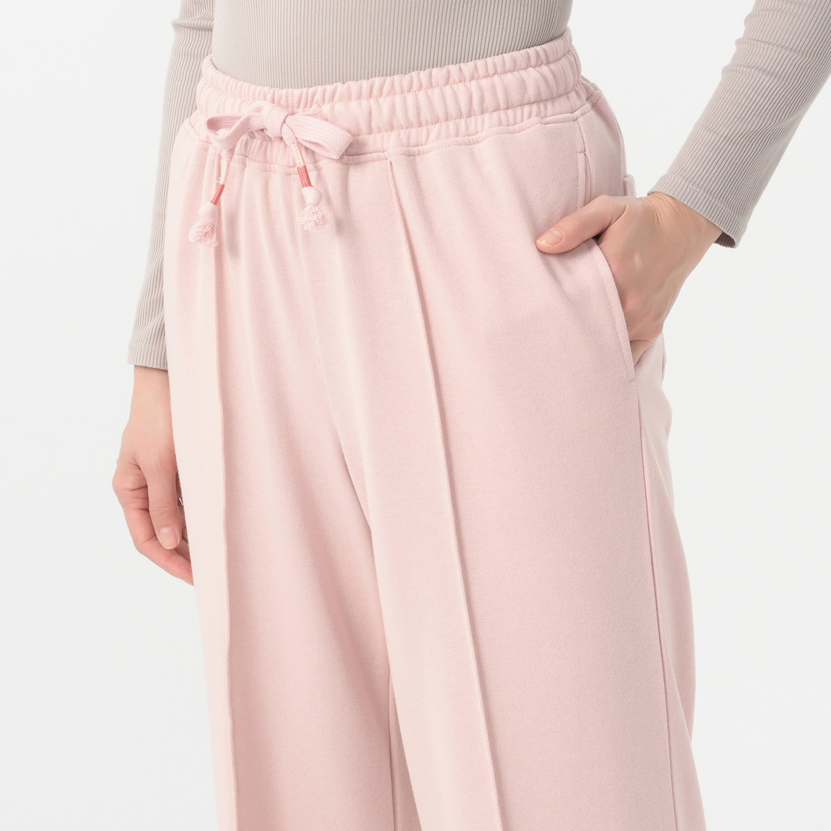 センタープレス風のピンタックデザインが脚をまっすぐに見せてくれるセミワイドパンツ。ウエストは総ゴム仕様。トップス次第で、ルームウェアでもタウンでも活躍します