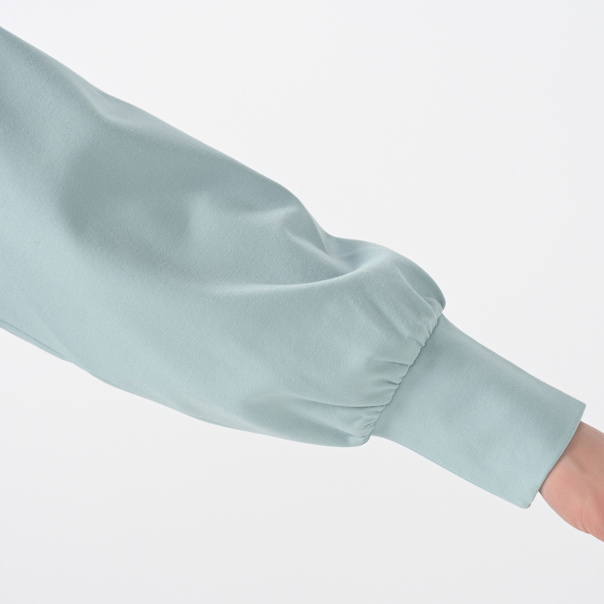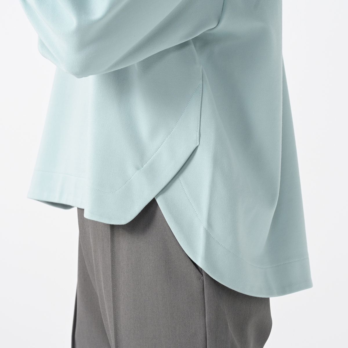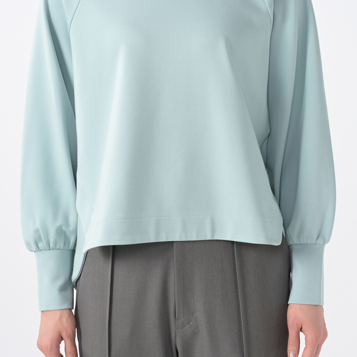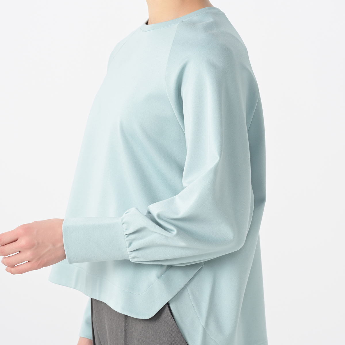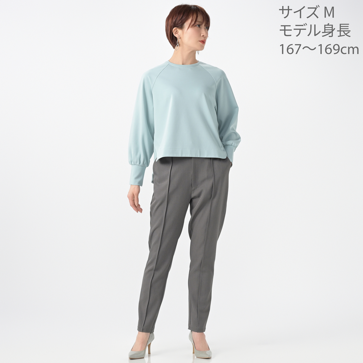 シンプルながら、袖のデザインが印象的なプルオーバー。袖をラグラン切替にすることで袖上のラインが綺麗に見え、上品なデザインに。ギャザーパフなので、袖をまくっても雰囲気があります。裾はスリット風の切り替え入りで、エレガントな雰囲気を保ちつつ、動きやすさにも配慮しました