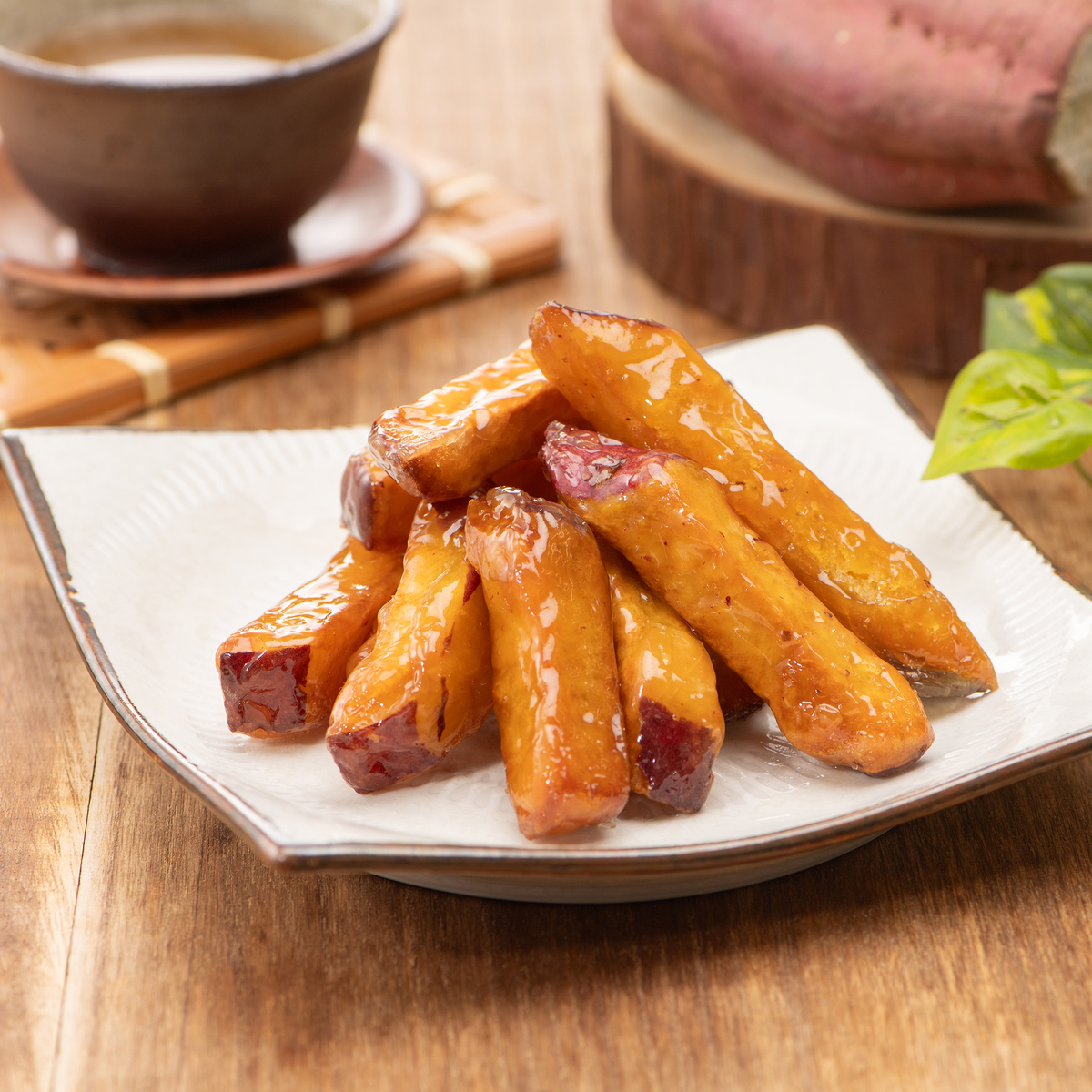 鹿児島県産のさつまいもを使用した、カリッとおいしいスティックタイプの大学芋。食べやすくても食べ応えは十分で、外はカリカリ、中はホクホク。外のカリカリ飴に、中のお芋が負けていない食感を味わえます