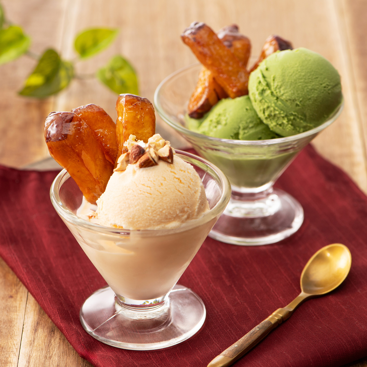 鹿児島県産のおいもが持つ濃厚な甘みを感じる一品。解凍するだけで食べられますし、半解凍の状態で食べれば、シャーベット状のシャリシャリ感の新感覚ひんやりおさつスイートとしてもお楽しみいただけます