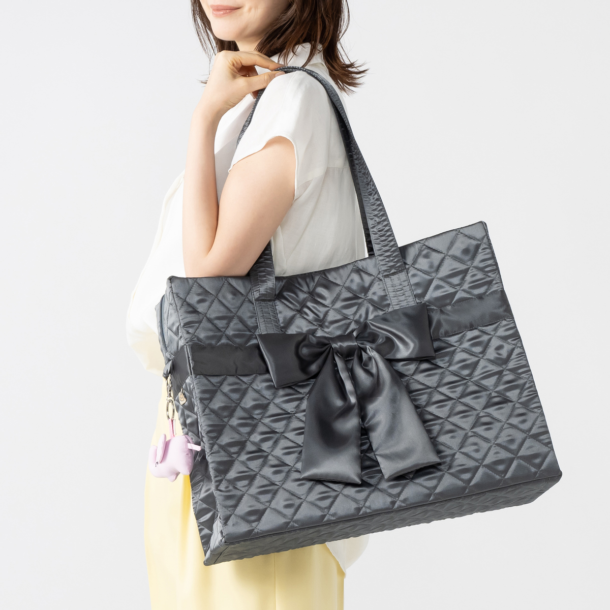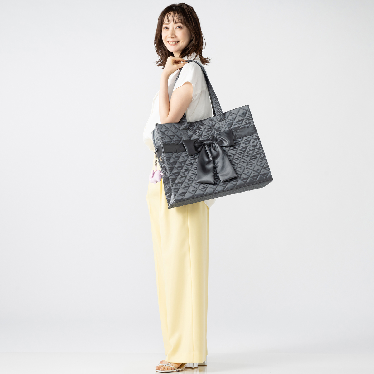 [サイズ(約)] 縦36×横47×マチ13.5cm ハンドル立ち上がり:28cm [重量(約)]※付属品含む 390g [素材] ポリエステル100% ※裏地有 タイ製 [仕様] 付属(取り外し可):チャーム×1、底板×1 開閉:ファスナー式 底ビョウ:無 [ポケット] 内側:オープンポケット×2 外側:なし 【タイ製】