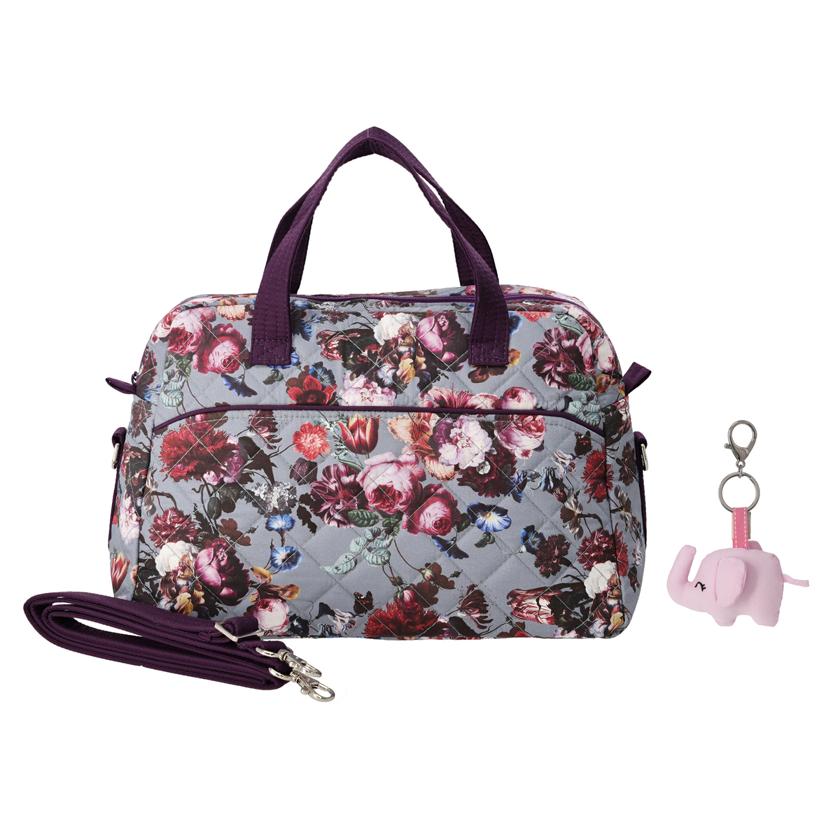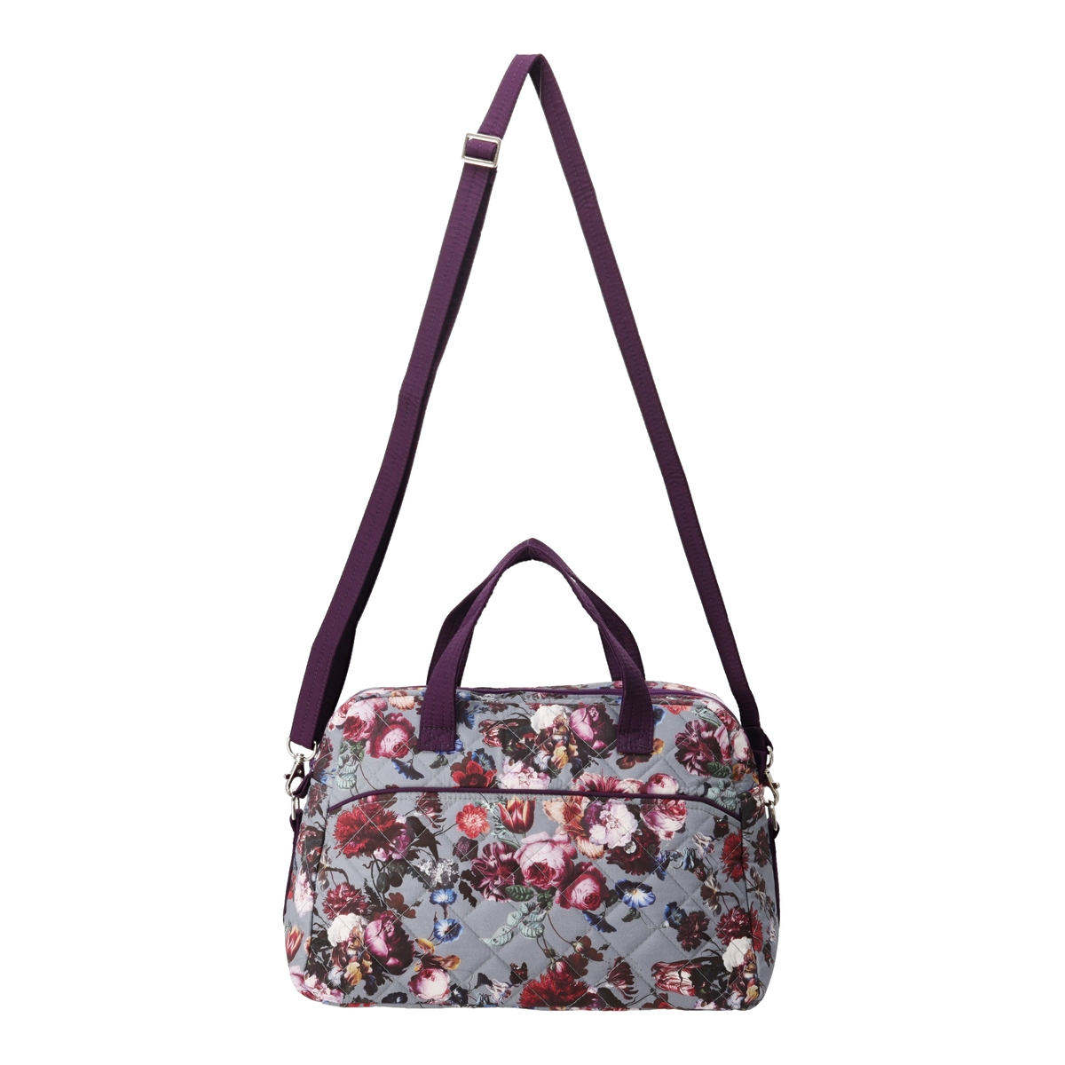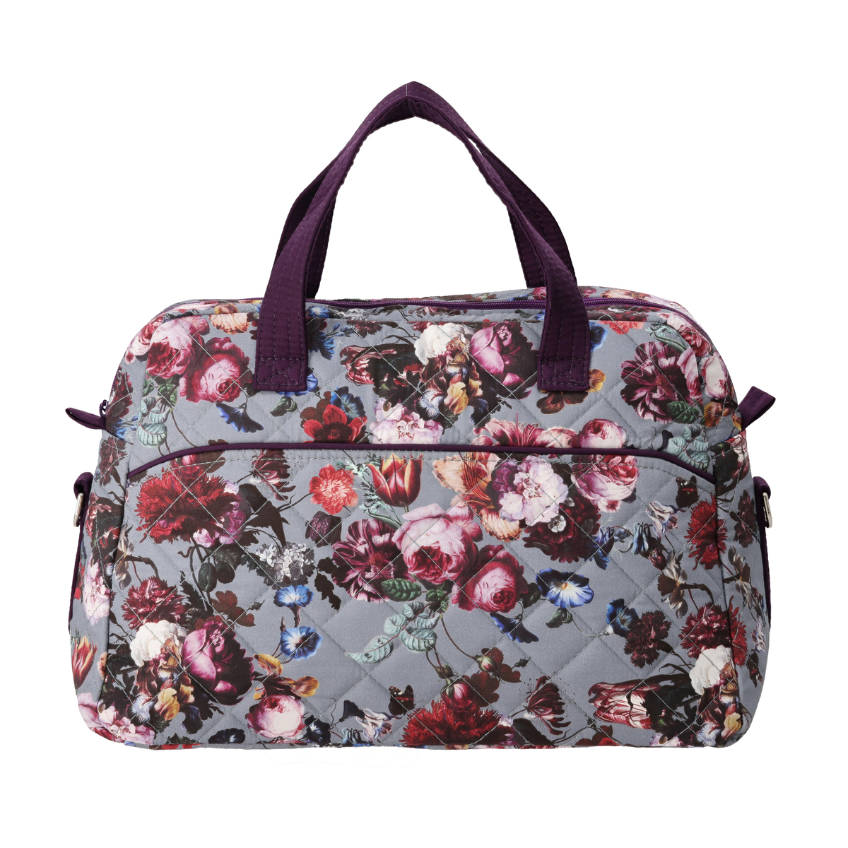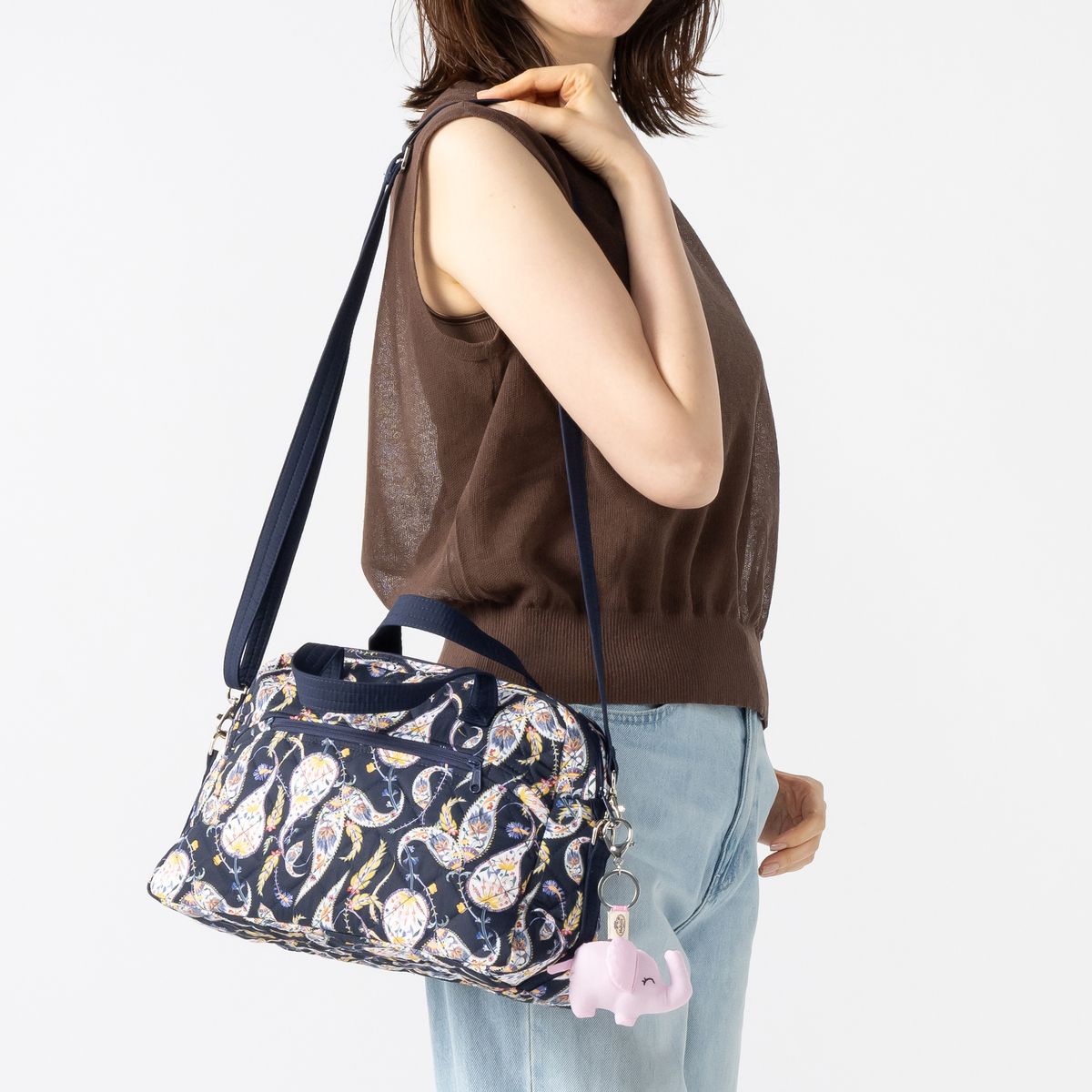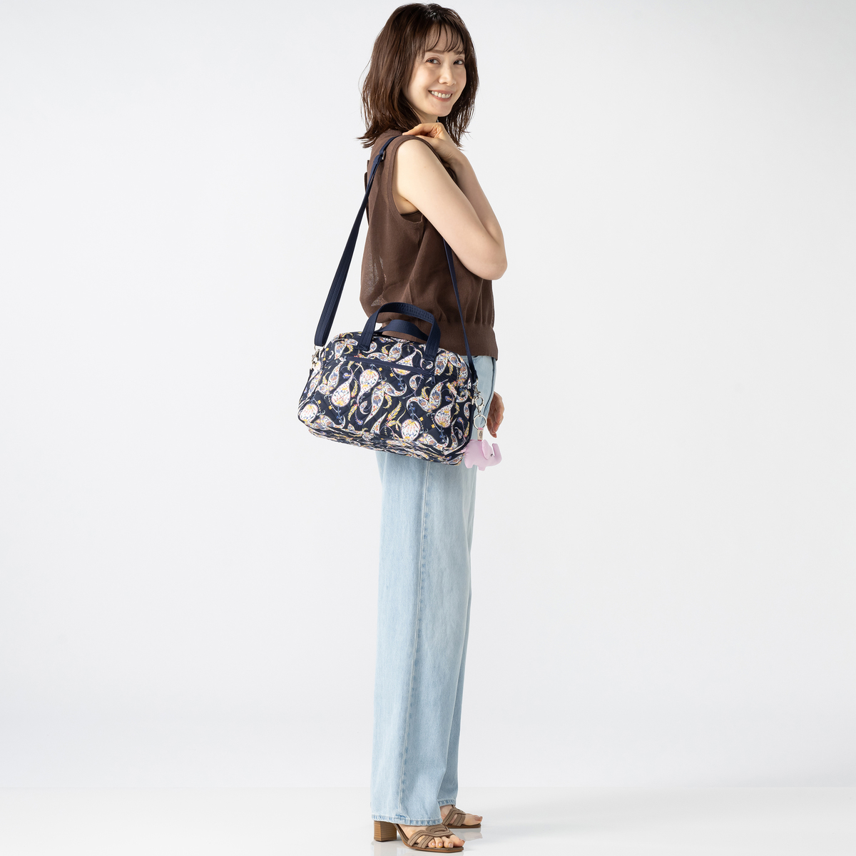 華やかなプリントデザインがコーディネートのアクセントに。ショルダーストラップは肩に食い込みにくい太さで、調節可能な長めのストラップを採用。肩掛けも斜め掛けもできます