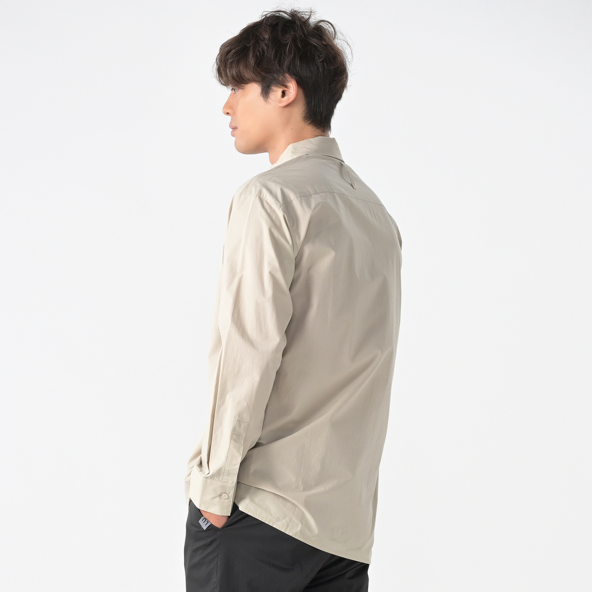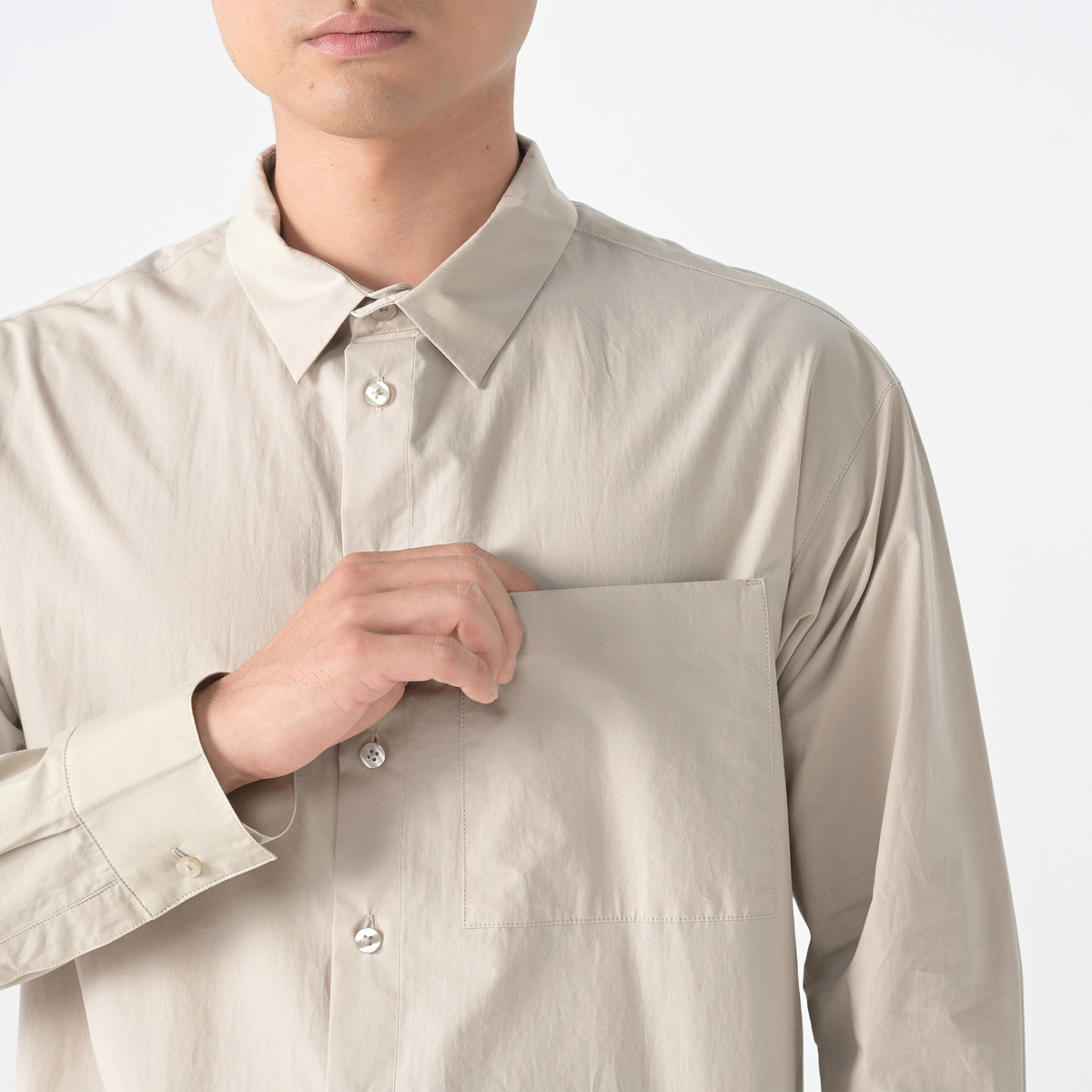綿100%素材でシルエットがすっきりとした大人のシャツ。ベストを合わせるとかっこよく決まります。シンプルなデザインなので着まわしやすく、さまざまなシーンで活躍します