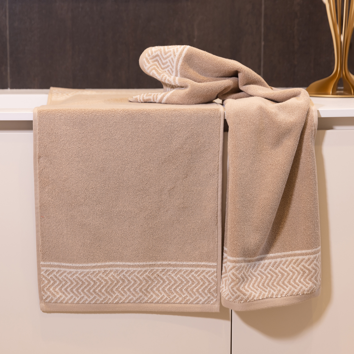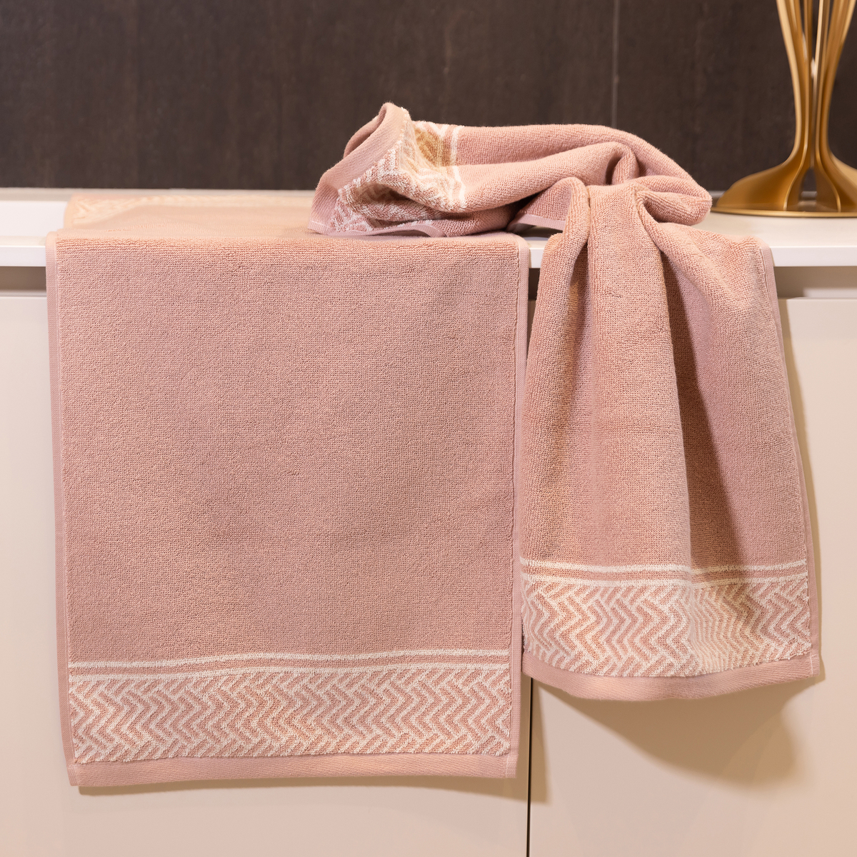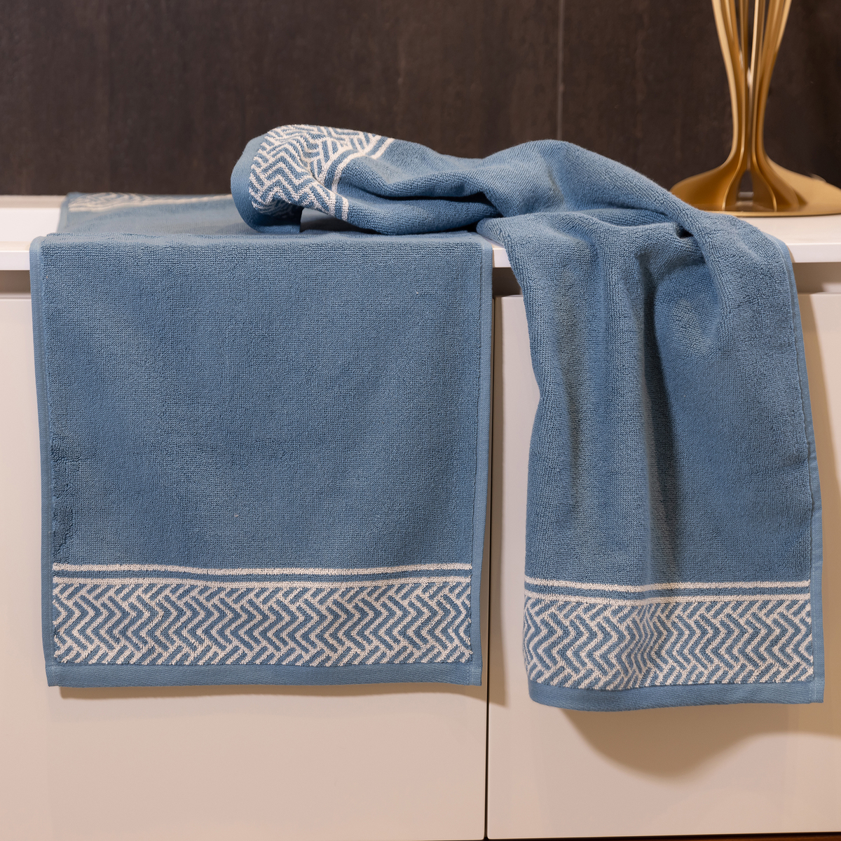 ジャカードで表現した繊細な柄と、しっかりとした重量感で、高級感が感じられる綿100%のタオル。ボリューム感、ふわふわ感を考えて、強すぎず甘すぎないように程よい撚り加減に調整。ポルトガル製で550GSMのしっかりとした厚みがあり、心地よく快適にお使いいただけます