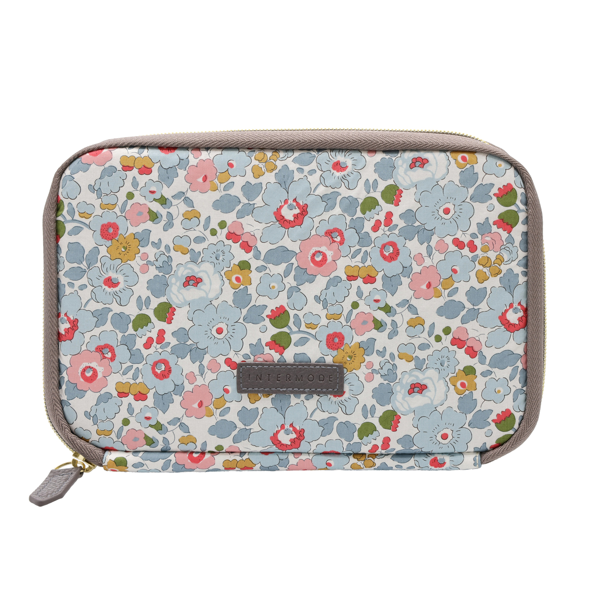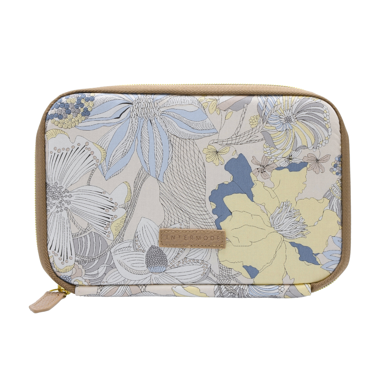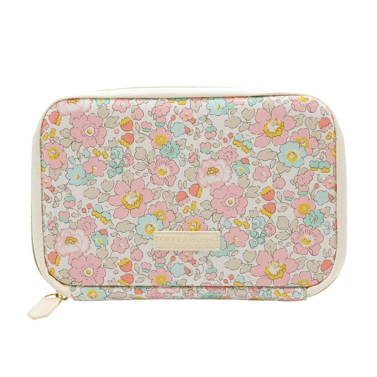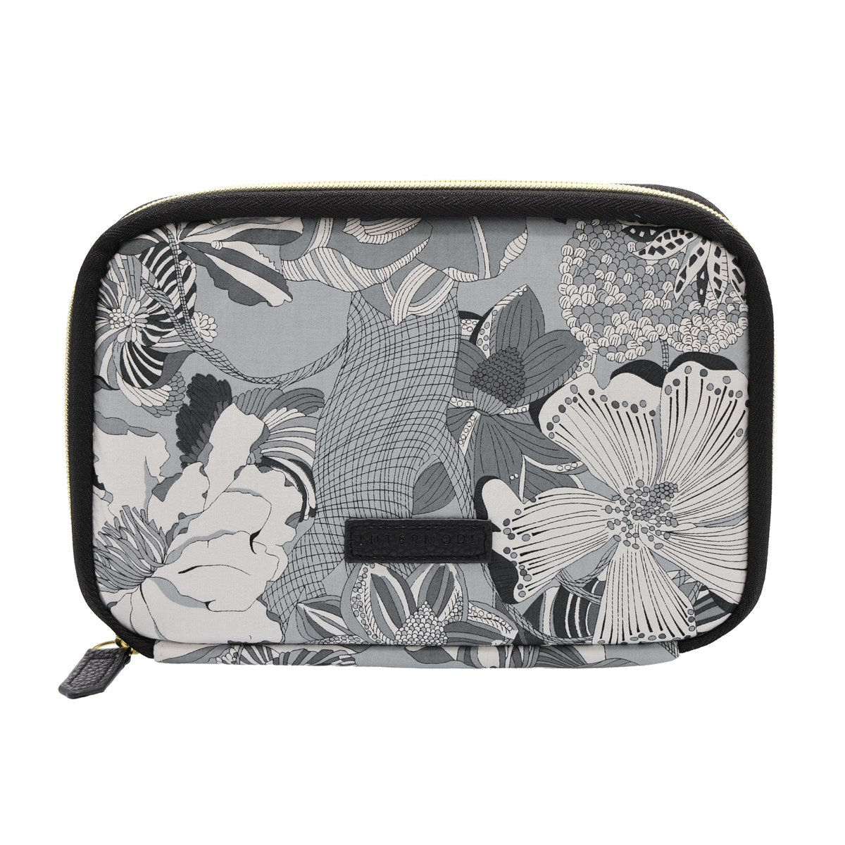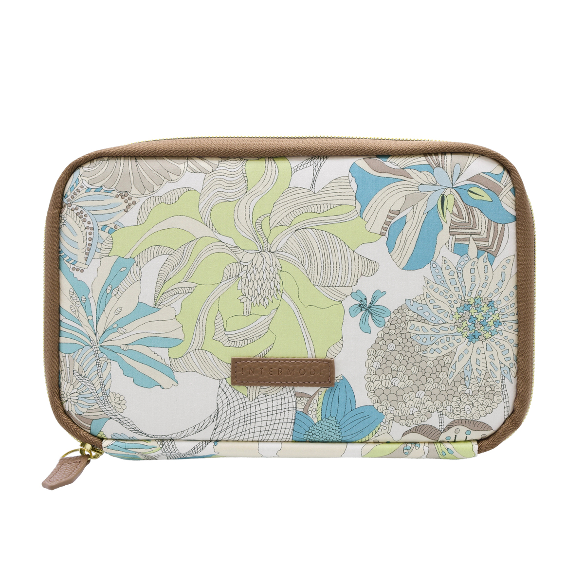 アクセントに、ロゴネームとファスナー引手に合皮を付けて、ポーチ単品で持ち歩いてもおしゃれなデザインに仕上げました。また、ロゴネームにはINTERMODEのロゴを刻印しています