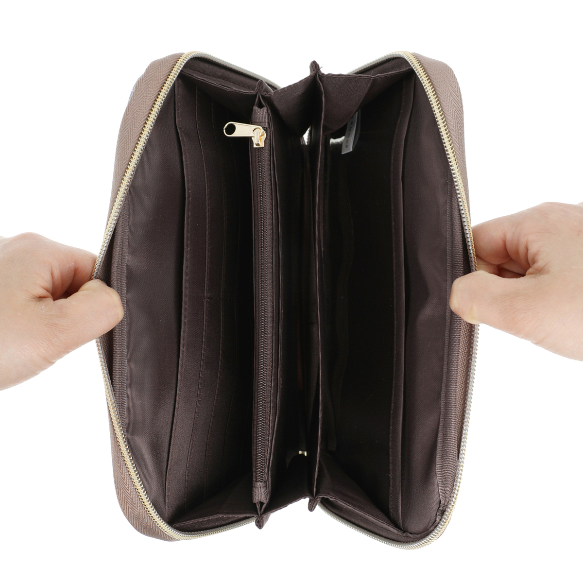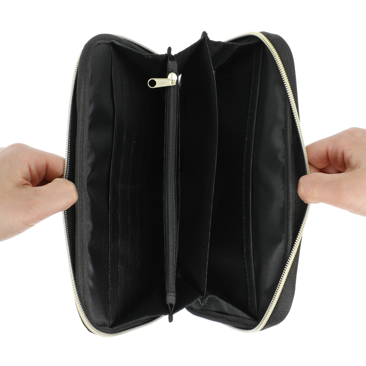 [サイズ(約)] 縦14×横24×厚み2.5cm [重量(約)] 210g [素材] 綿100% 皮革部分:合成皮革 ※裏地有 [仕様] 開閉:ファスナー式 底ビョウ:無 [ポケット] 内側:仕切り×1 仕切り兼用ファスナーポケット×1 オープンポケット×2 透明オープンポケット×1 カード入れ×8 外側:オープンポケット×1 [注意事項] ※洗濯はお避けください ※濡れた物を直接入れますと色落ちする事がありますのでご注意ください ※この製品は一部に合成皮革を使用しています ※色落ちや硬化の原因になりますので、濡れたまま放置しないでください ※水に濡れた場合は、柔らかい布等で素早く水気を取り、陰干ししてください ※汚れた場合には、湿らせた布で軽くふき取り、乾いた布で拭き上げてください ※ベンジン類のご使用はお避けください ※素材の特性上、時間経過による劣化(経時変化)が起こる恐れがあります ※収納の際は汚れを落としてから、高温多湿の場所を避け、直射日光の当たらない場所で保管し、他のものとの重ね置きはしないでください 【中国製】