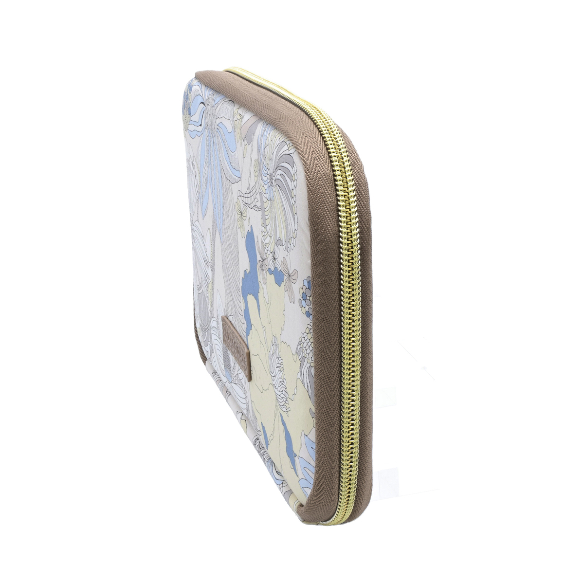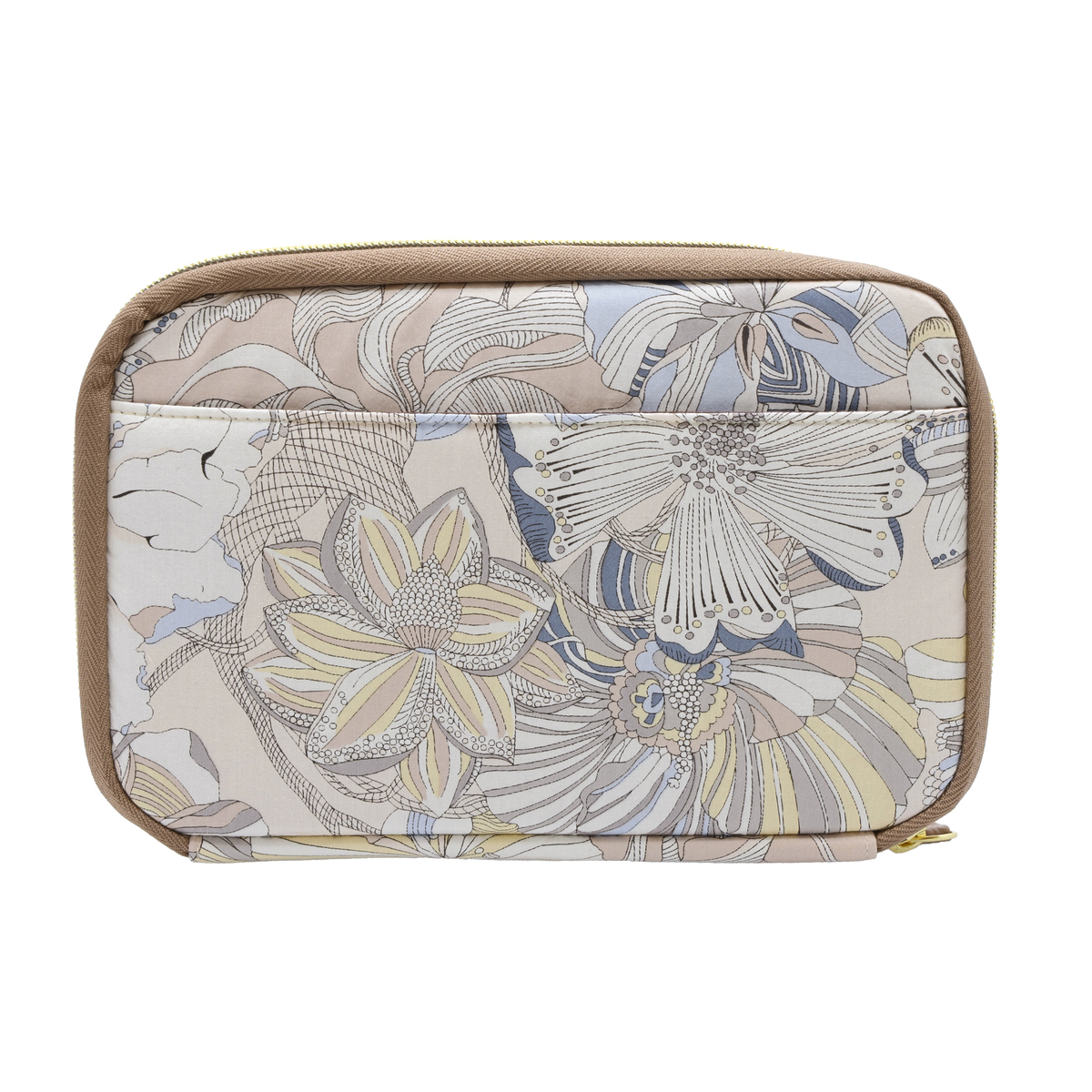 繊細で華やかなリバティプリントを使用したマルチポーチです。パスポートや通帳、お薬手帳などが入るサイズ感。蛇腹式で、中央のファスナーポケットには小銭を、その前後の空間にはお札などを入れることが可能です。8枚分収納できるカード入れも付いているので、お財布のようにもお使いいただけます