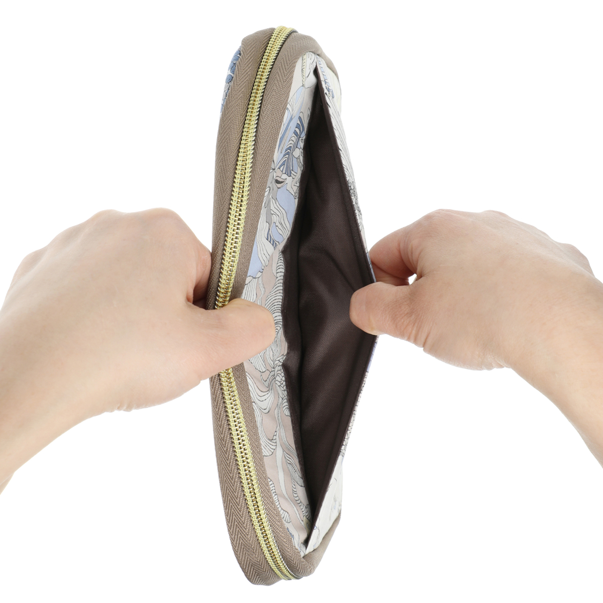 IM リバティプリント お財布型マルチポーチブルーグレーを購入しました。 ちょうど、大きめタイプのマルチポーチが欲しかったので、届いて、 早速、マルチポーチに必要な物が入り、スマホも入れられて、 さっと、席外す時に、そのまま、マルチポーチごと抱えるので便利です。 中身も深いので取り出しやすく、気に入りました。