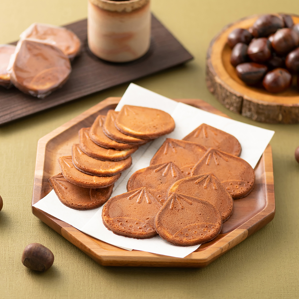 香ばしい焼き栗をイメージした焼き菓子です。やさしい甘さと風味豊かな味わいで、食べ進めるほどに口の中でほろほろとほどける食感。昔懐かしいお菓子を現代風にアレンジした、錦豊琳自慢の一品です。熱いお茶やコーヒーに浸して食べると、口の中に栗の風味がより一層広がります