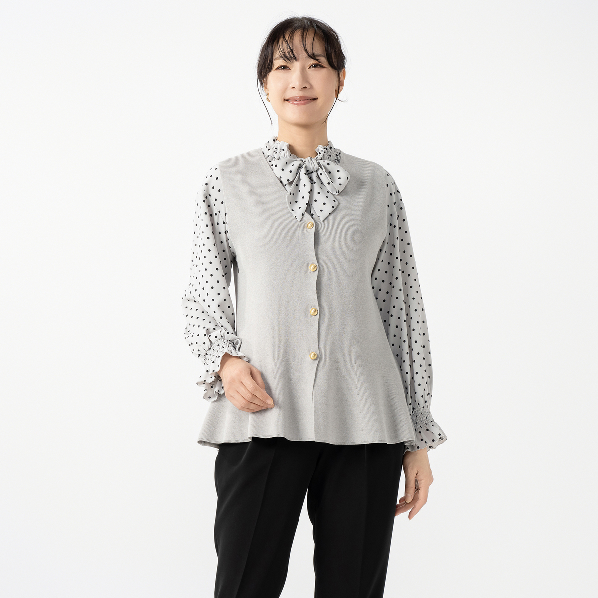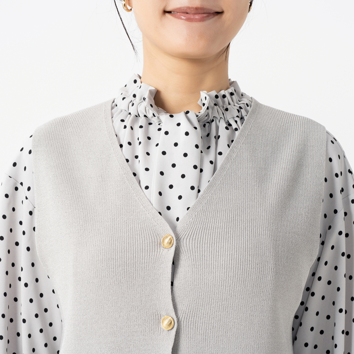 カットソーやシャツの上に合わせるだけで、トレンド感のあるコーディネートが完成。大人のレイヤードスタイルをお楽しみいただけます