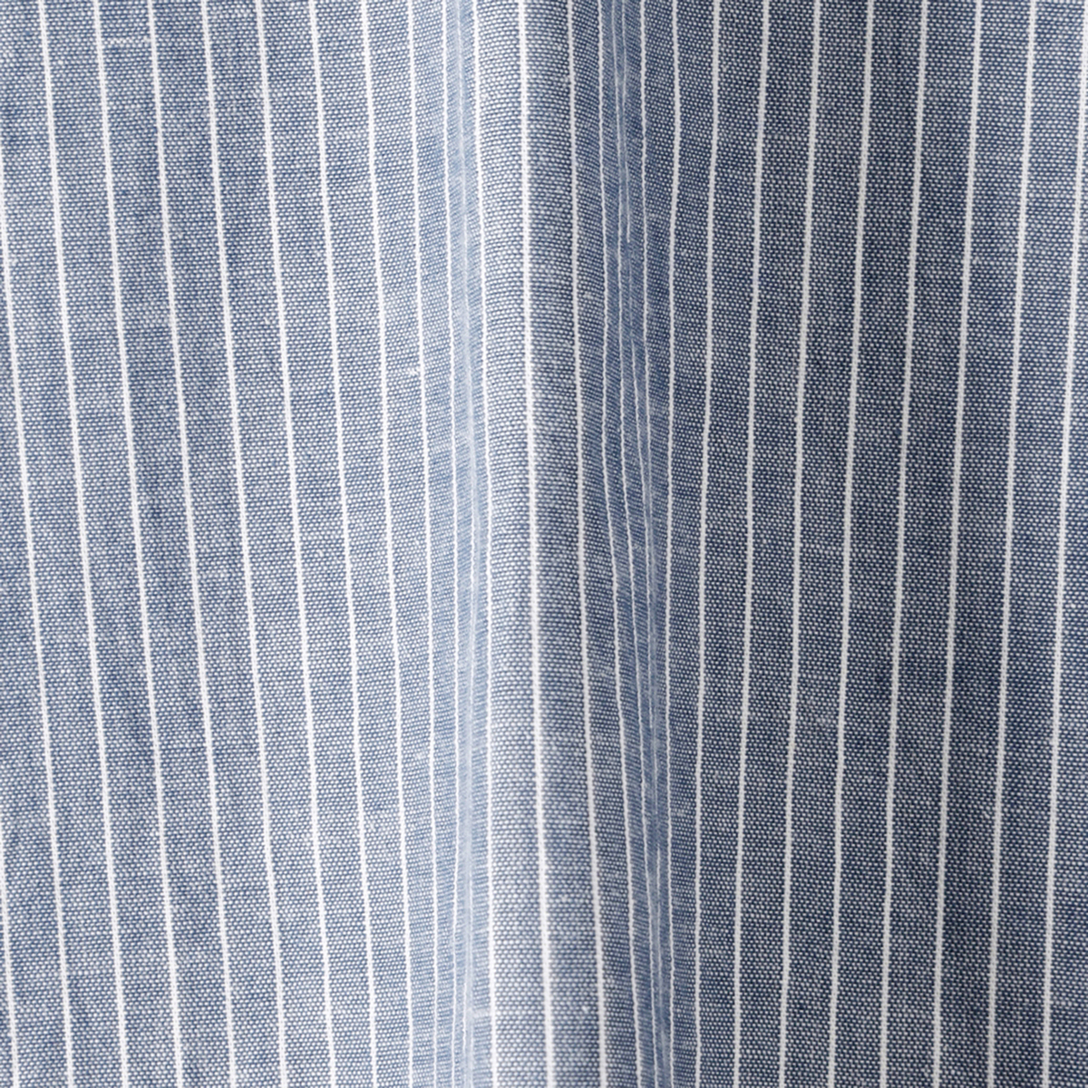 オーガニックコットン素材のブラウス。青×白のストライプ地に、ネイビーと白のスズランの手刺繍をあしらったフェミニンなデザインです。胸元に大胆に入った刺繍が顔まわりを華やかに演出します