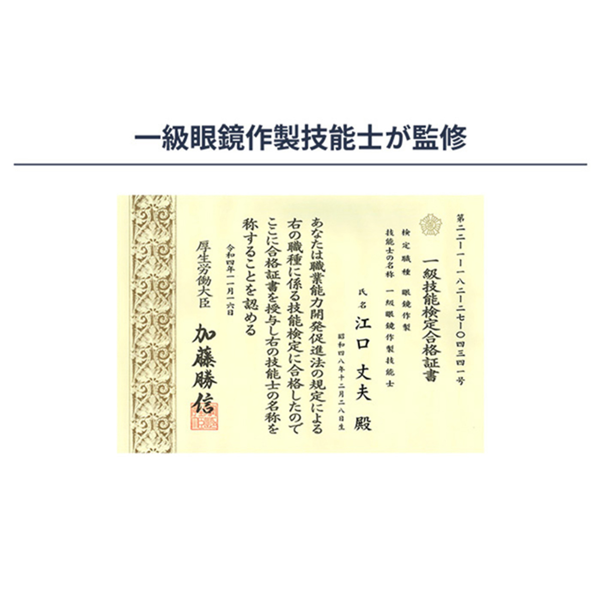 二重焦点レンズを使用した、メガネ型拡大鏡。遠方用と手元用、ふたつのレンズからなる両用レンズです。二重焦点レンズで遠くも近くも掛けたまま*。1級眼鏡作製技能士が監修した商品です