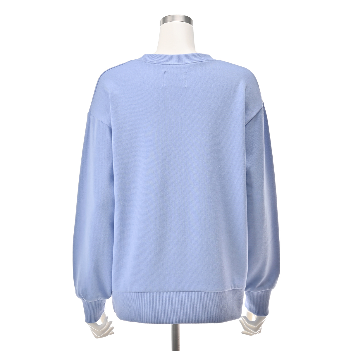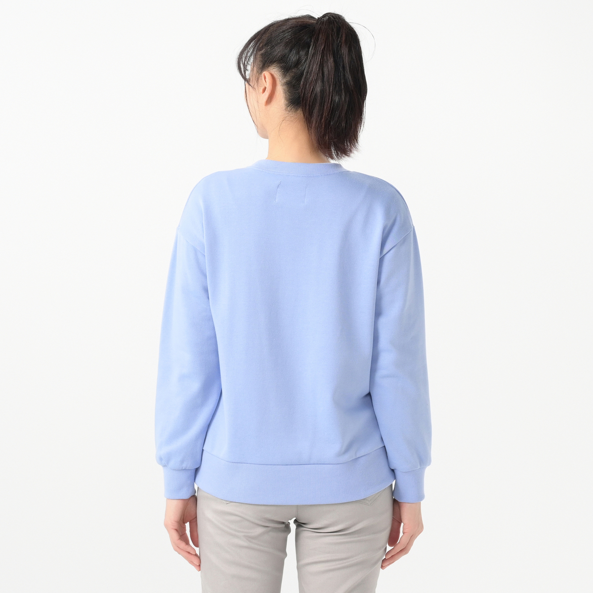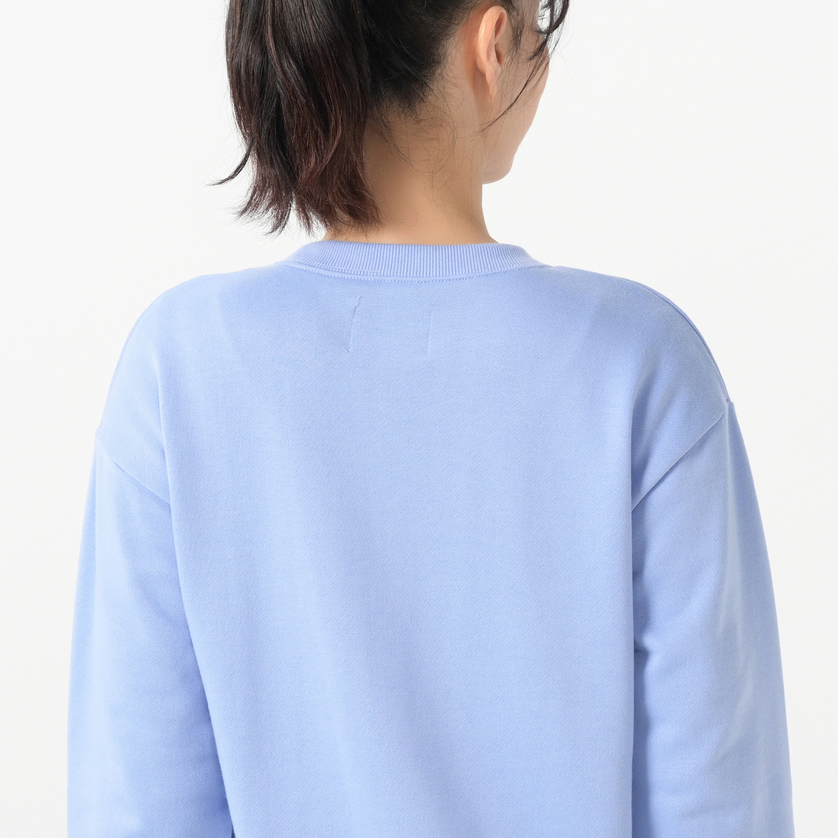 ポリエステル/綿混で、ソフトな風合いの裏毛素材を使ったスウェット。軽量な生地に仕上げており、適度な厚みで重ね着してももたつきにくく、衿・袖口、裾には伸縮性のあるリブ素材を使用しました