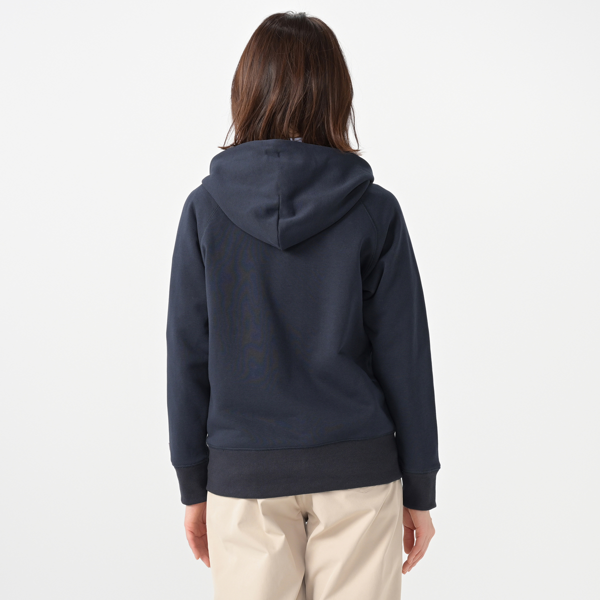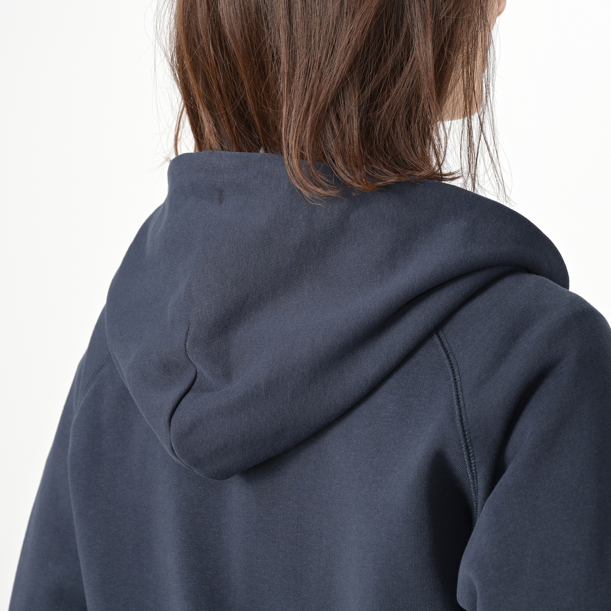 ネックが高めでフードがしっかりと立ち上がり、お顔周りを華やかかつ上品に見せてくれる1枚。深めにとったアームホールと広めの身幅で、ゆったりとリラックスした着心地です