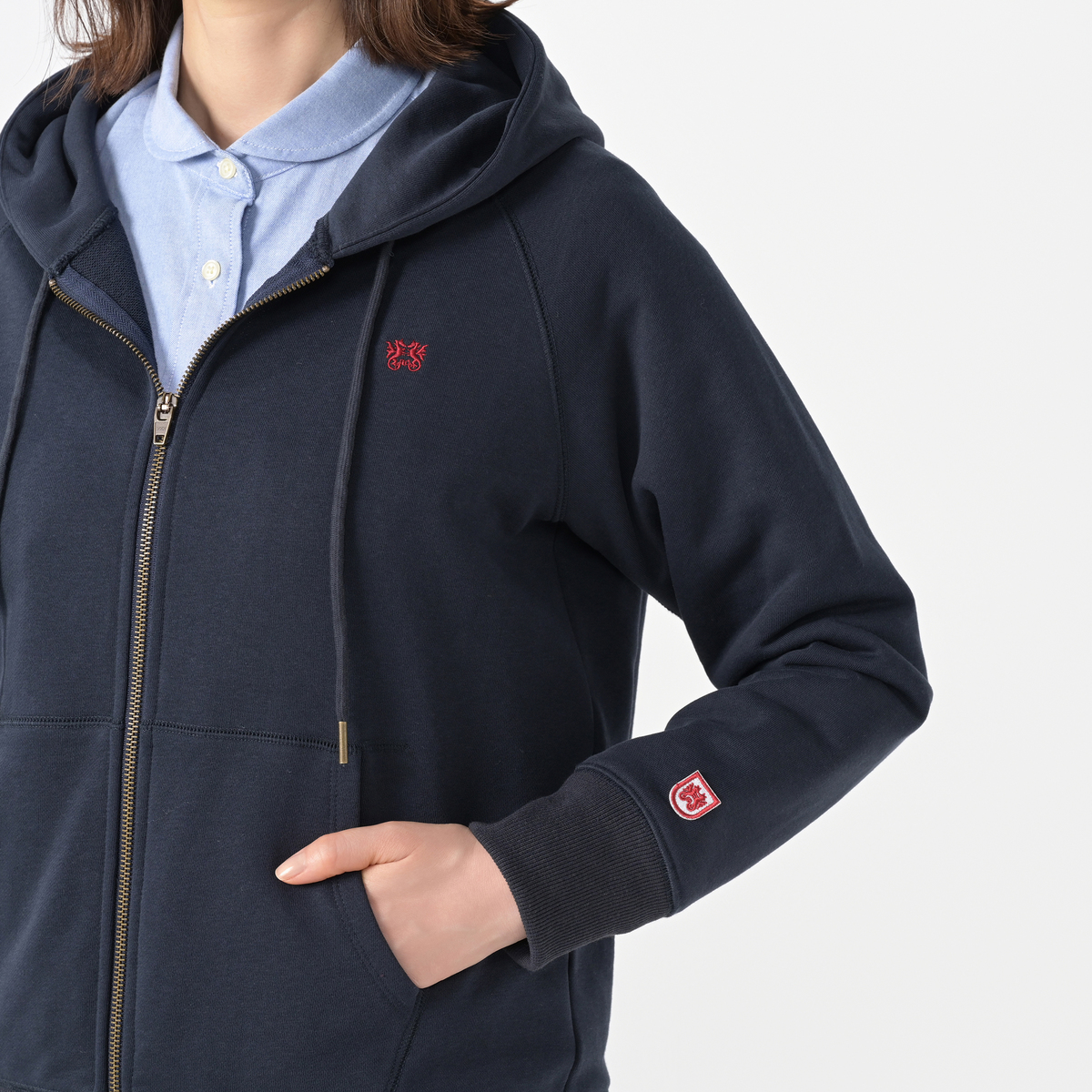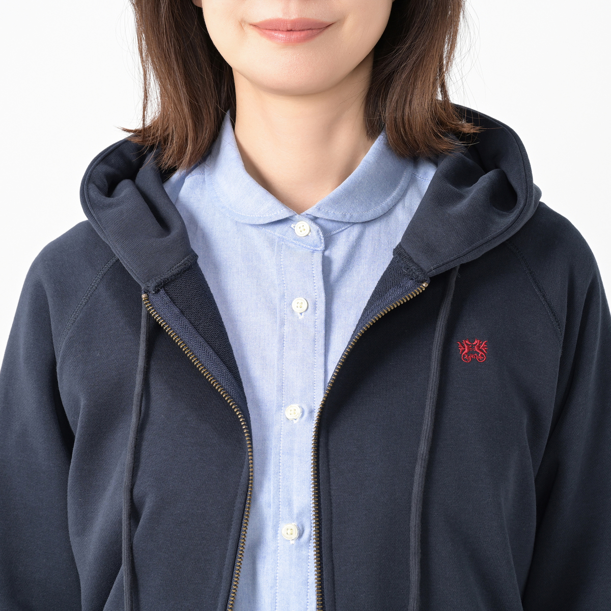 ふっくらと編み立て、肉厚で目の詰まったコットン・ポリエステルの裏毛を使用。胸元にはブランドアイコンのドラゴンの刺繍を施しました