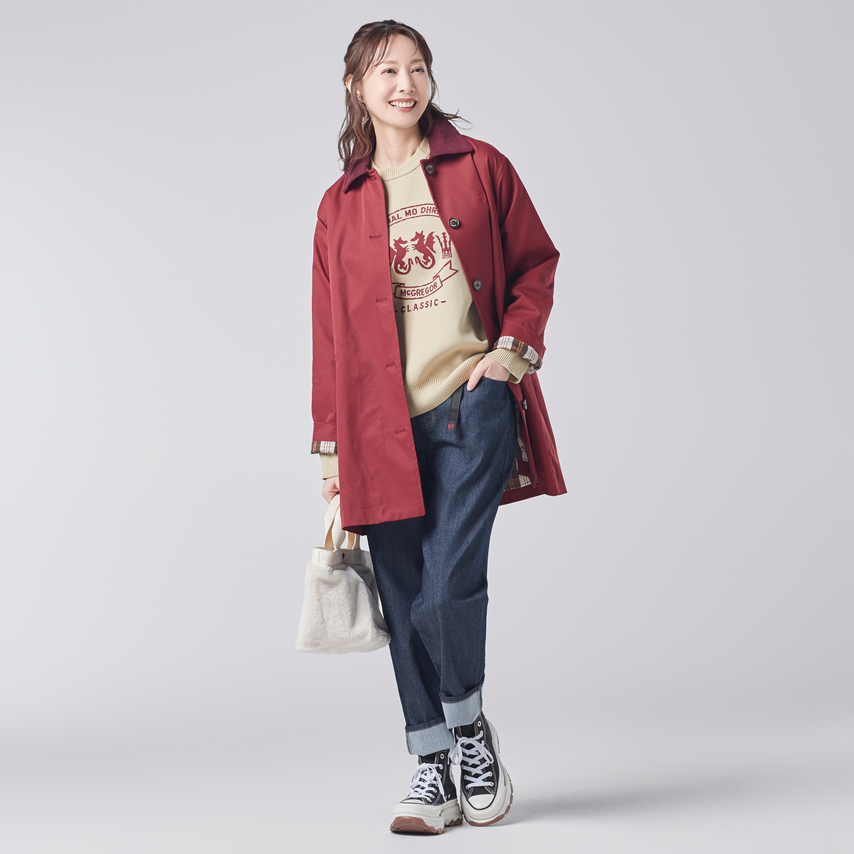 シンプルながら、ダブルジャカードで編み出したブランドロゴがスタイリングのポイントに。スカートもパンツも上品なカジュアルコーデにまとめてくれるアイテムです