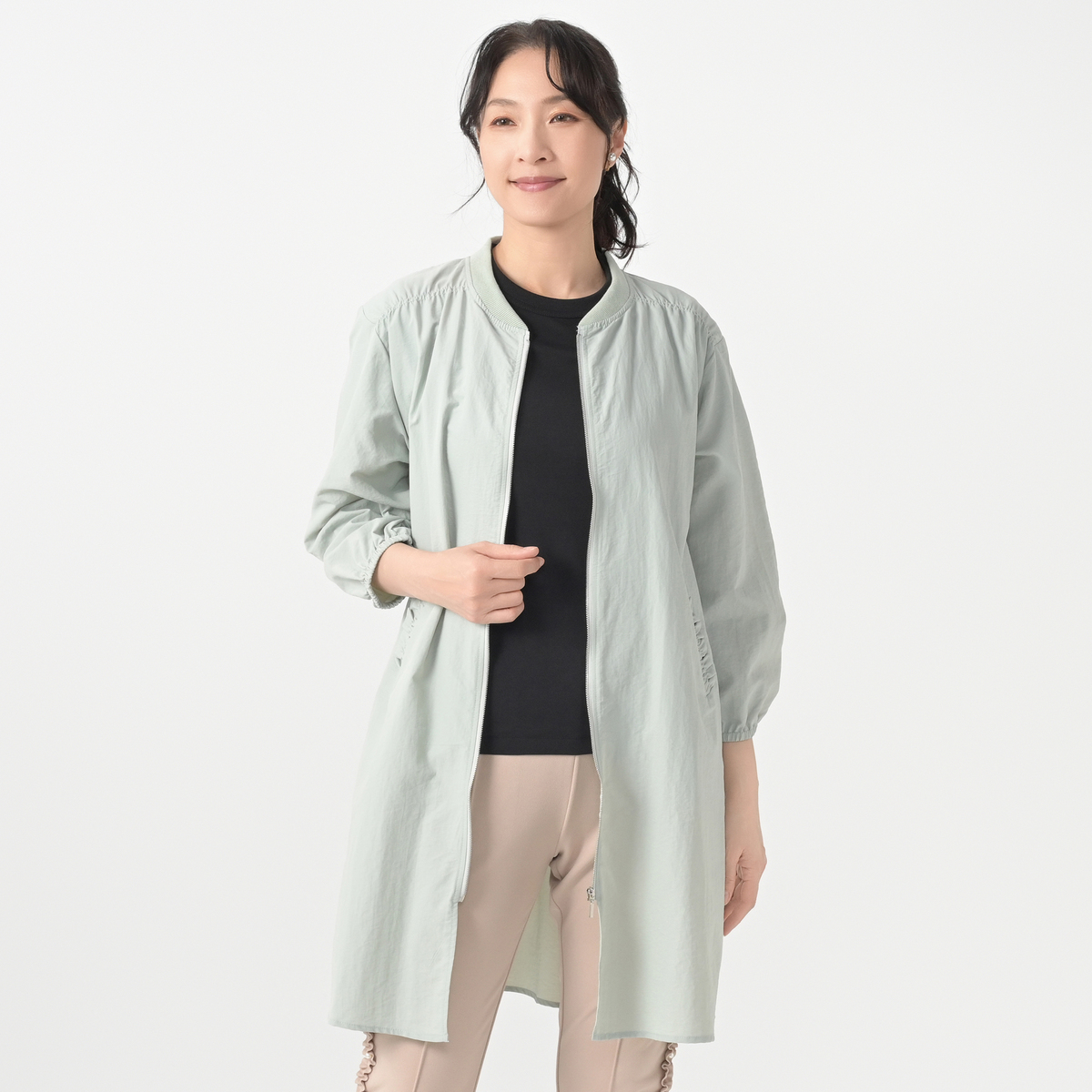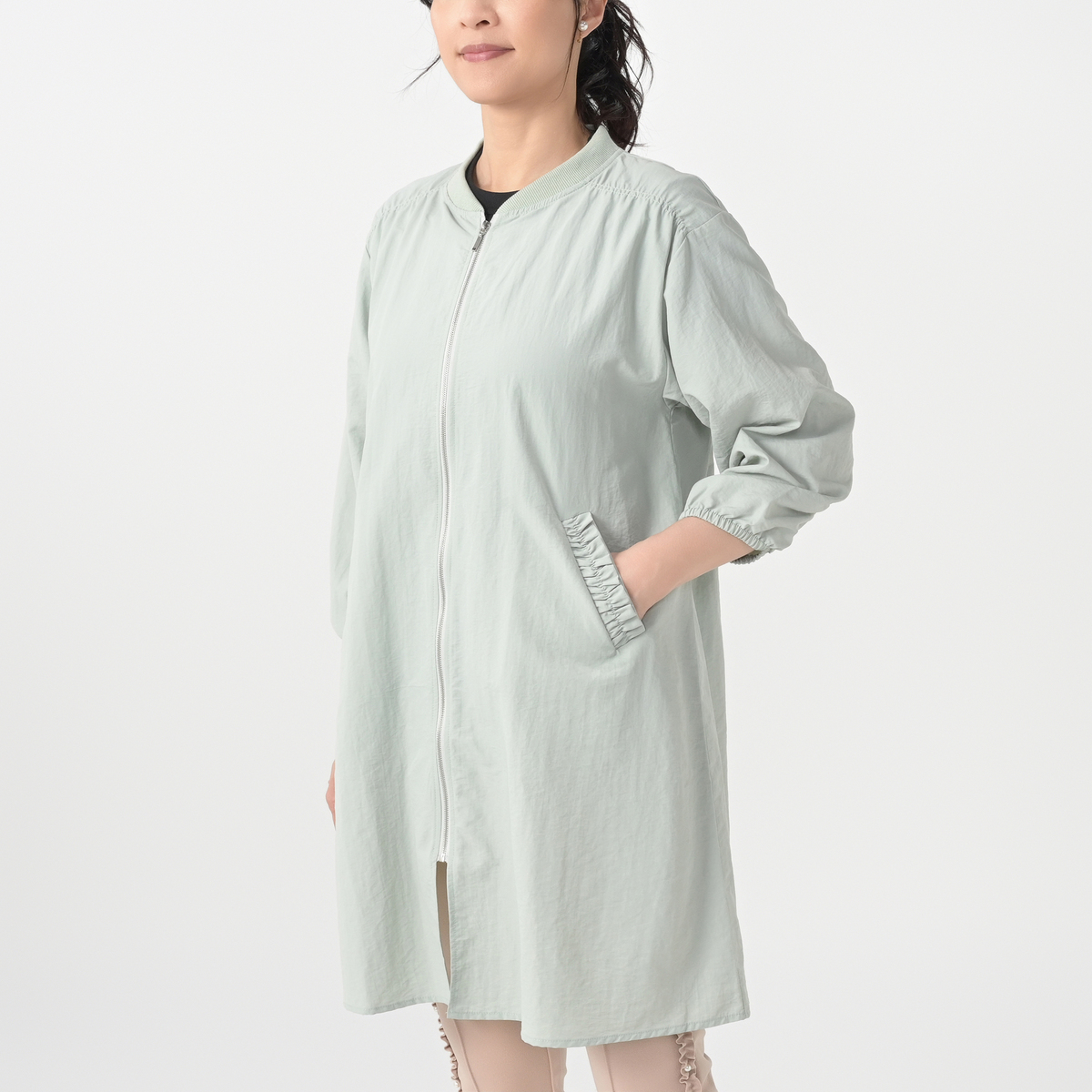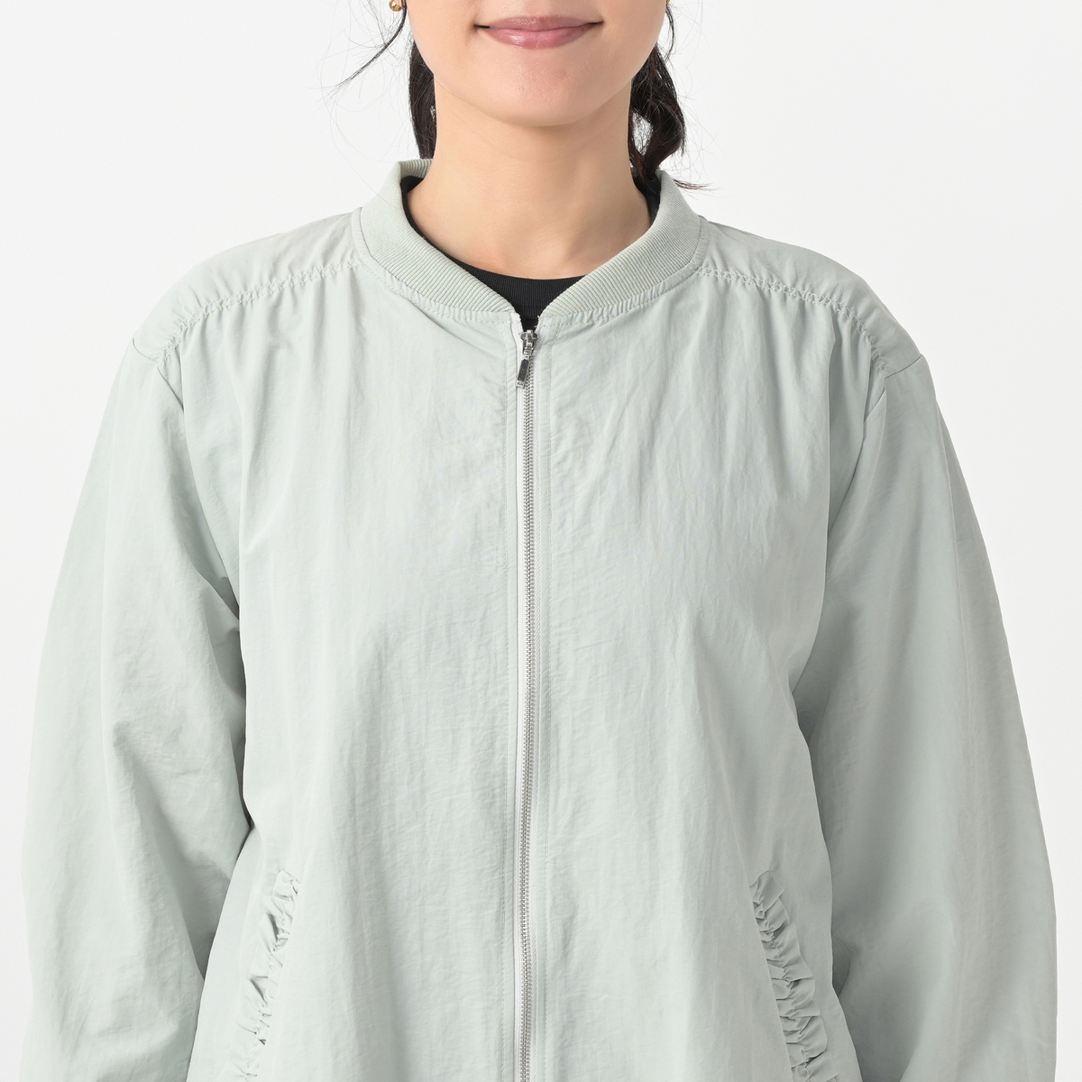 軽やかな生地で作られたブルゾン。季節の変わり目におすすめのエレガントな一枚です。フロントジップ仕様で着脱しやすく、ゆったりとしたシルエットでリラックスした着心地を感じていただけます