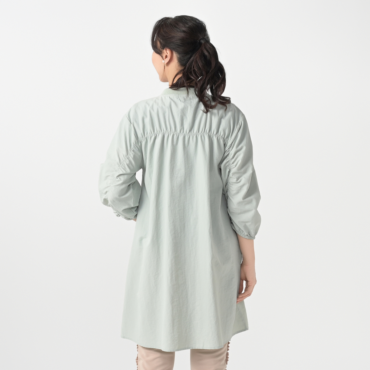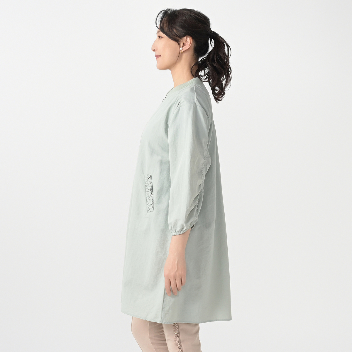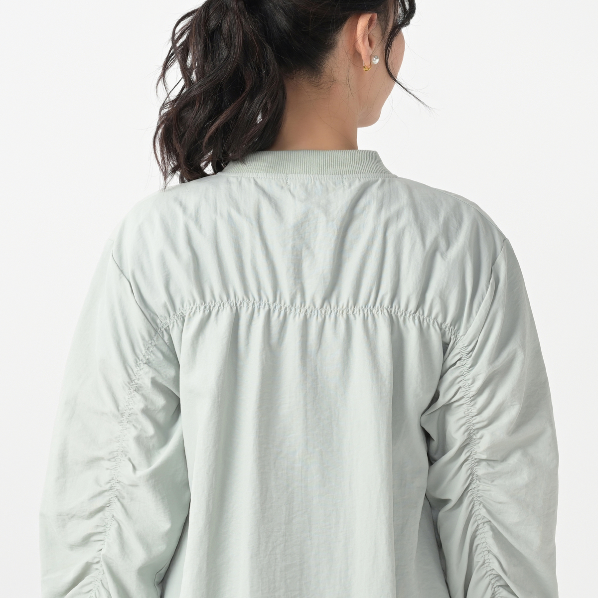 軽やかな生地で作られたブルゾン。季節の変わり目におすすめのエレガントな一枚です。フロントジップ仕様で着脱しやすく、ゆったりとしたシルエットでリラックスした着心地を感じていただけます