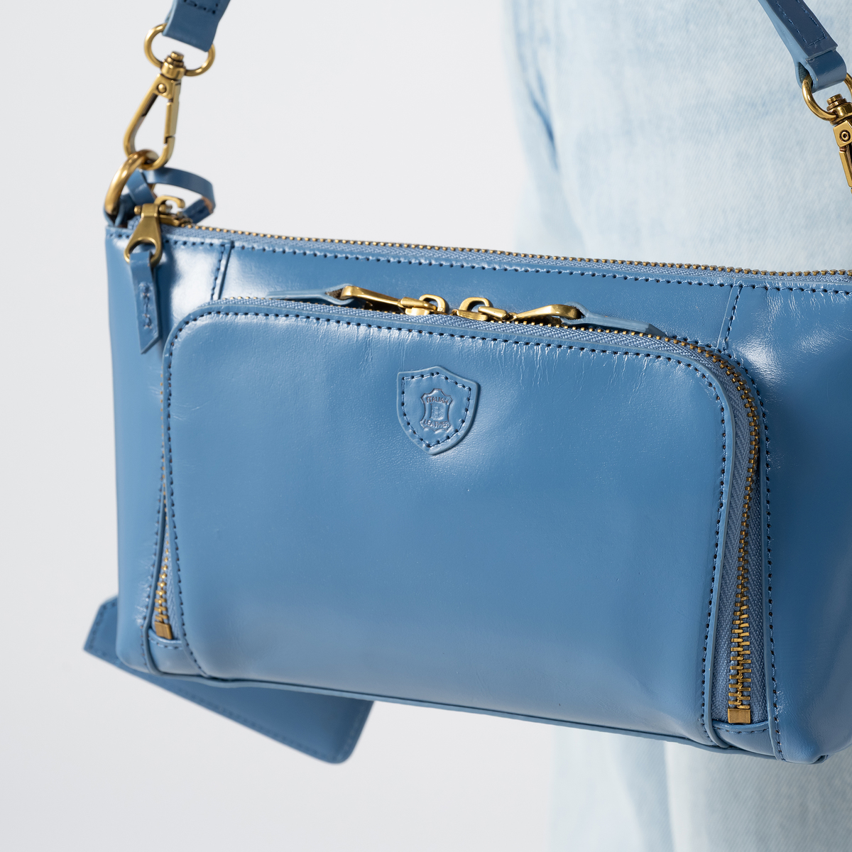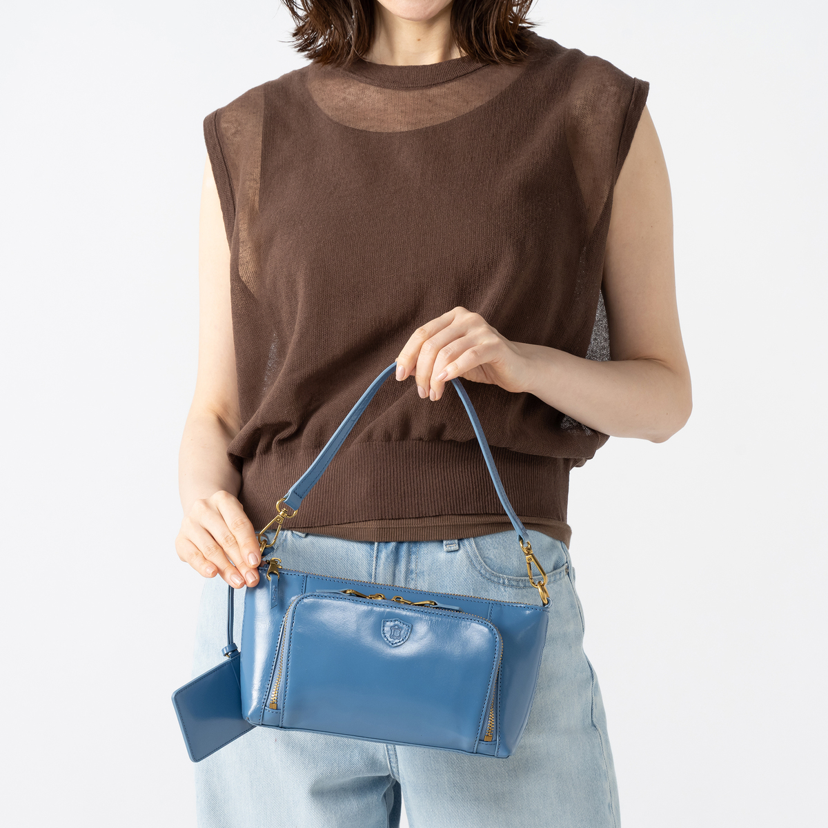ショートハンドル・ロングハンドルの2WAY仕様のショルダーバッグ。スマートフォンとお財布などを入れる部屋を分けられるので区分けしやすく、シーンによって使い分け。表側・内側共にポケット付きで、整理しやすい仕様です