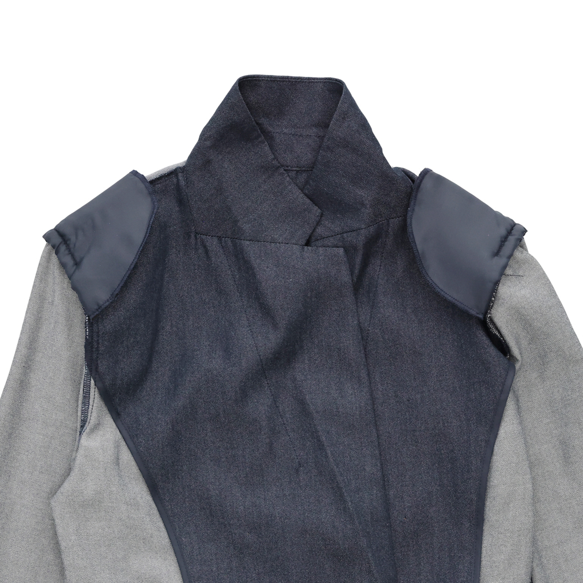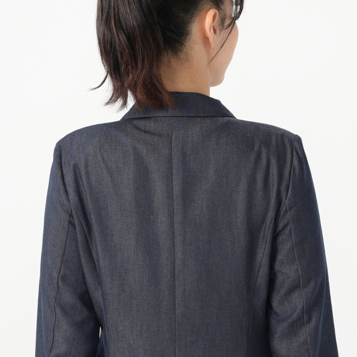 衿はベーシックなテーラーデザイン。袖口にはスリットがあり、折り返して袖丈を調整可能。肩パッド付きで型崩れしにくいのもポイントです