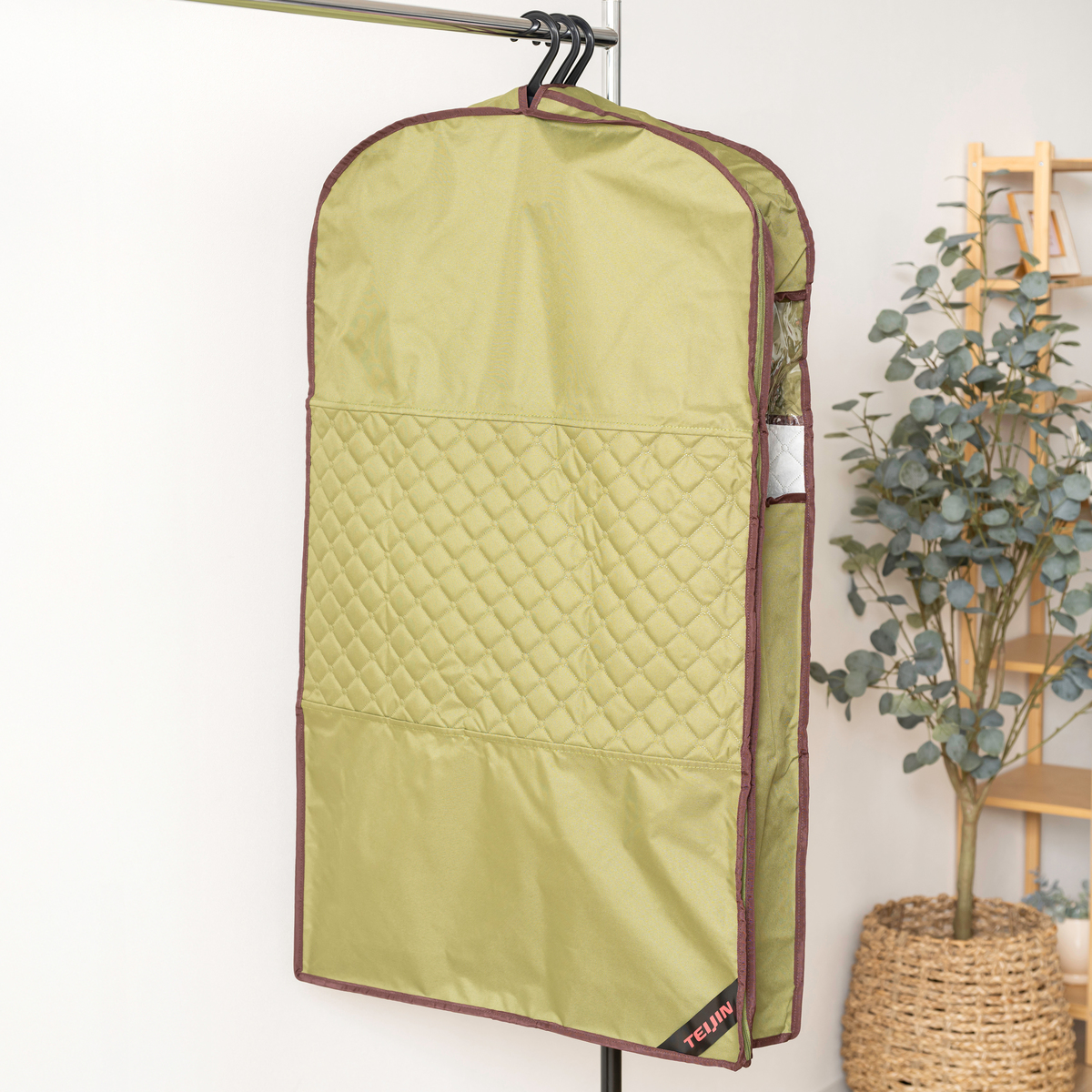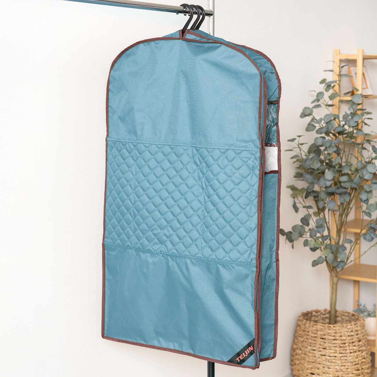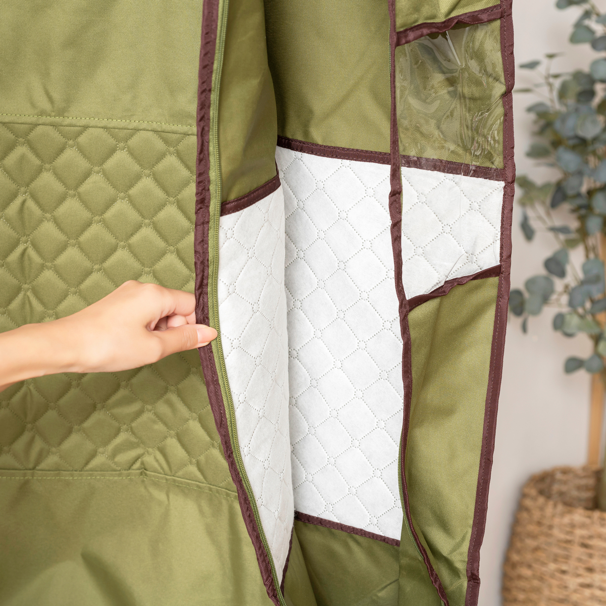 衣類の収納に便利なカバー。両面キルト部分の中層に帝人のベルオアシスとマイティトップ(R)IIを使用。両面キルト部分の中層に使用している素材には、吸放湿性をはじめ、抗菌防臭機能*1や消臭機能(アンモニア、酢酸)*2、防ダニ加工*3があります