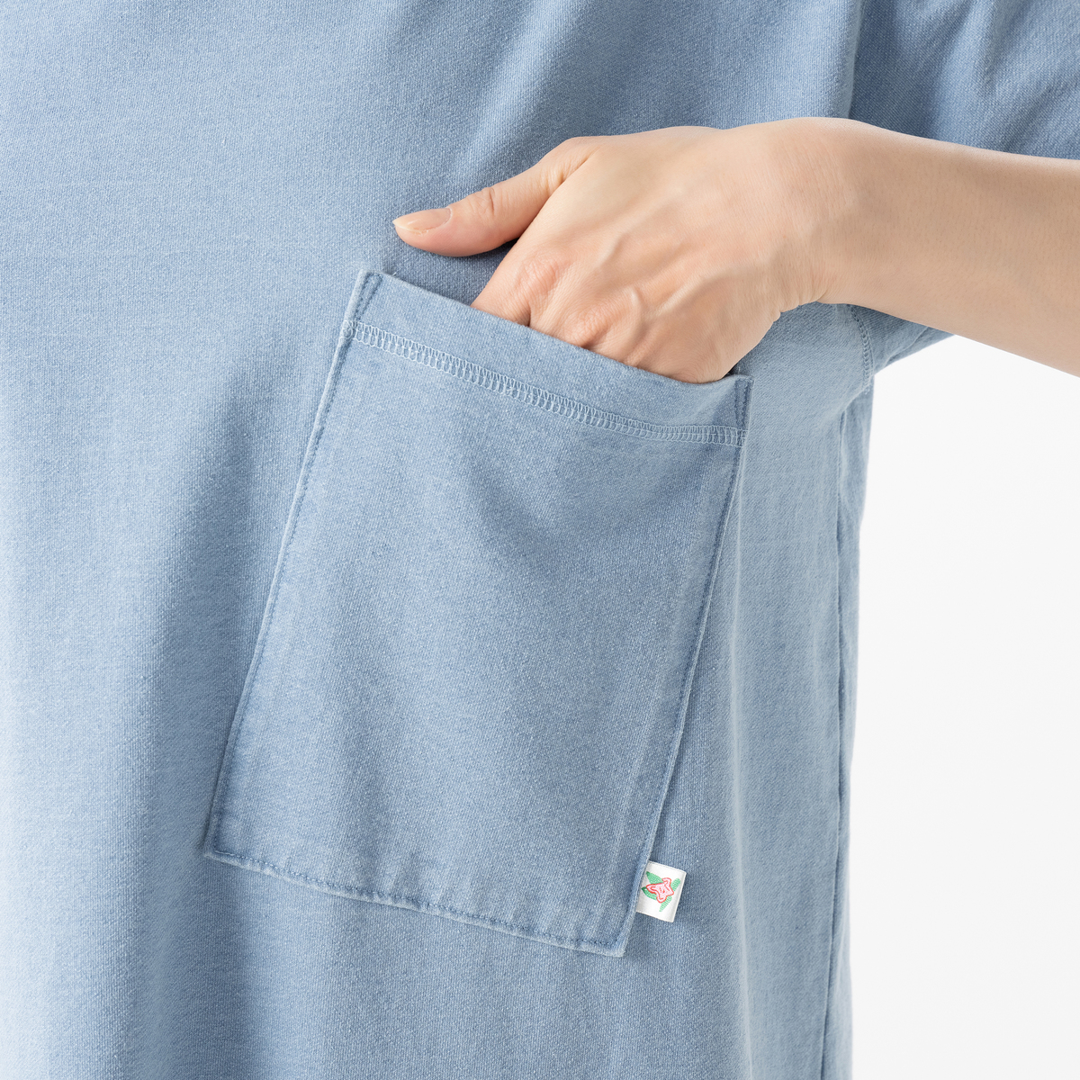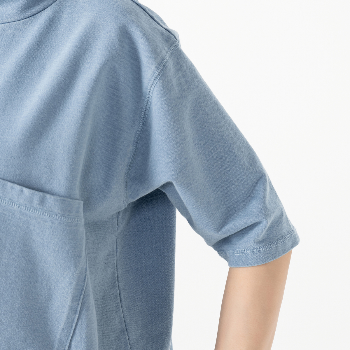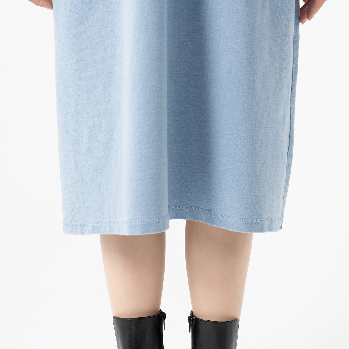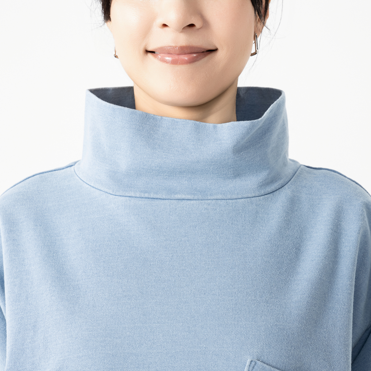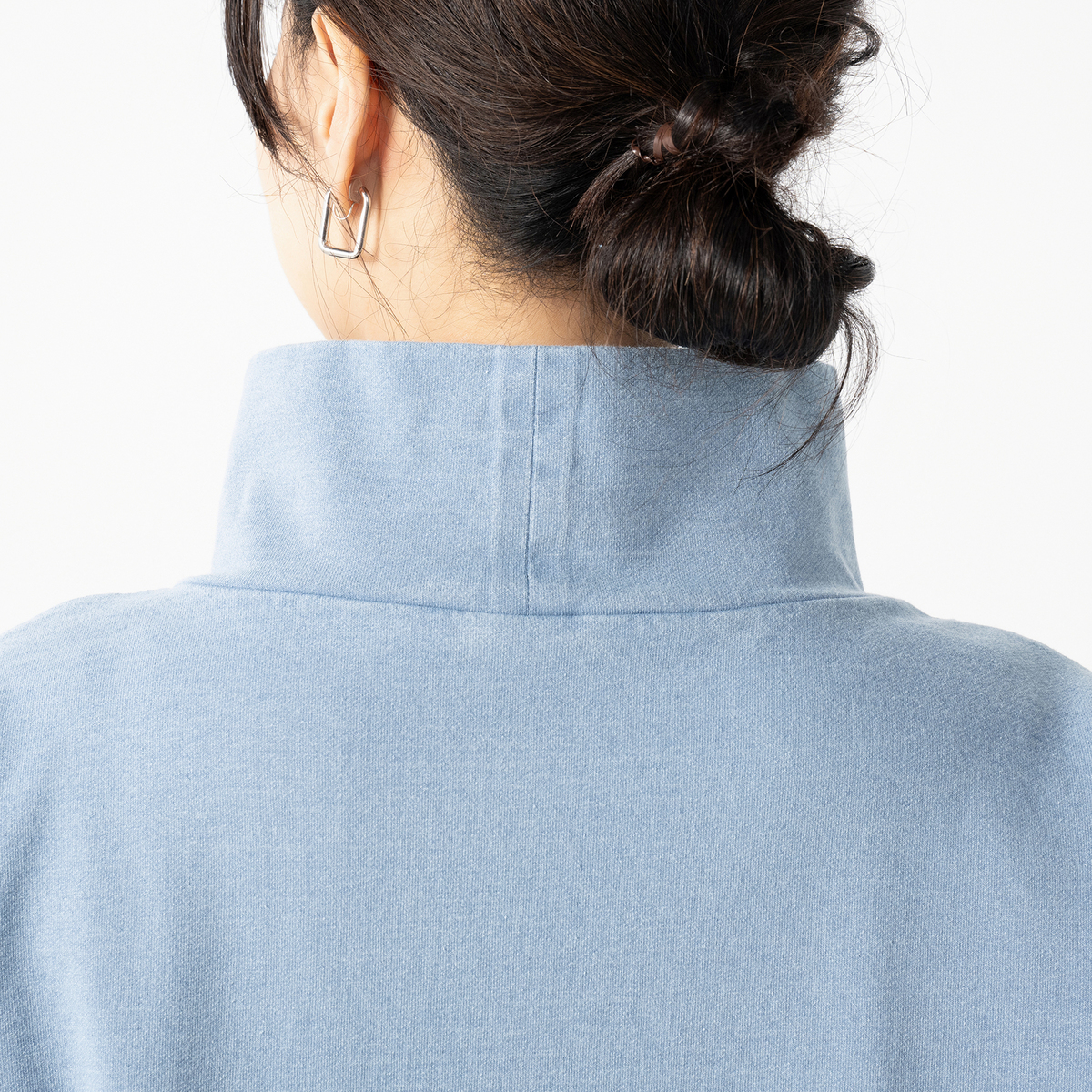 裏毛素材を使用したカットデニムのハイネックワンピース。リラックス感があり、デイリーで着やすいアイテムです