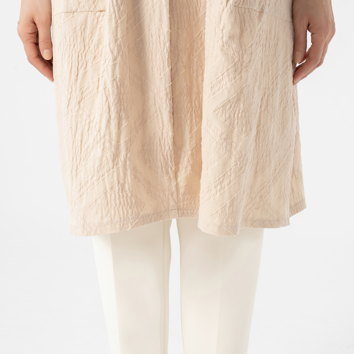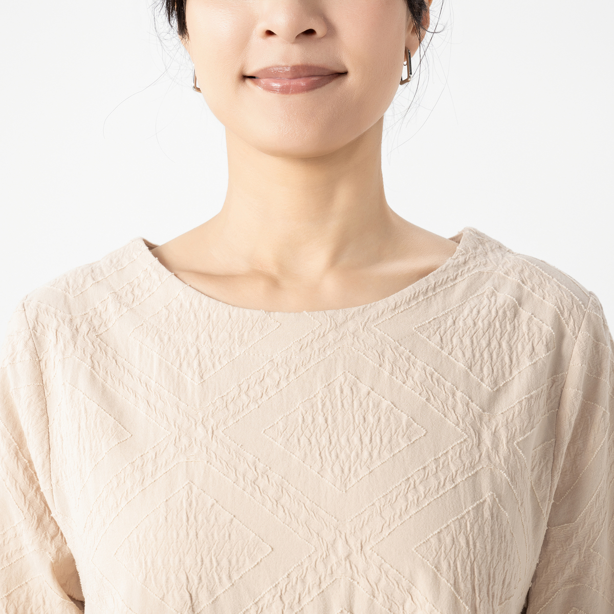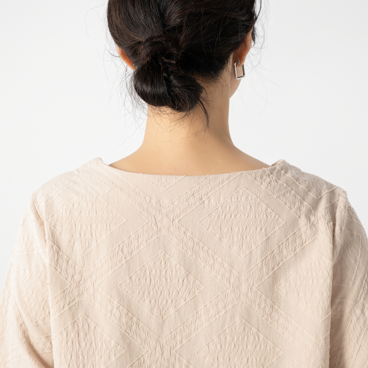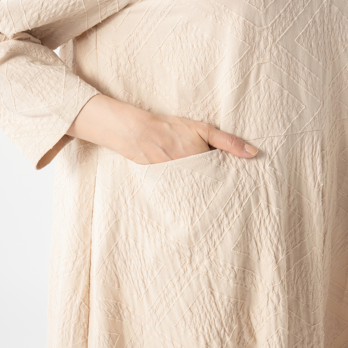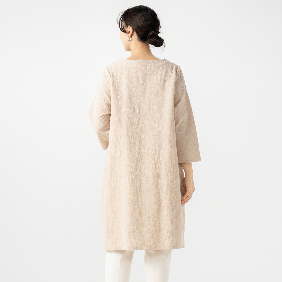 立体感のあるジャガード素材を使用し、上品で洗練された印象に。スカーフなどを合わせたアレンジで、様々な雰囲気を楽しむことができます