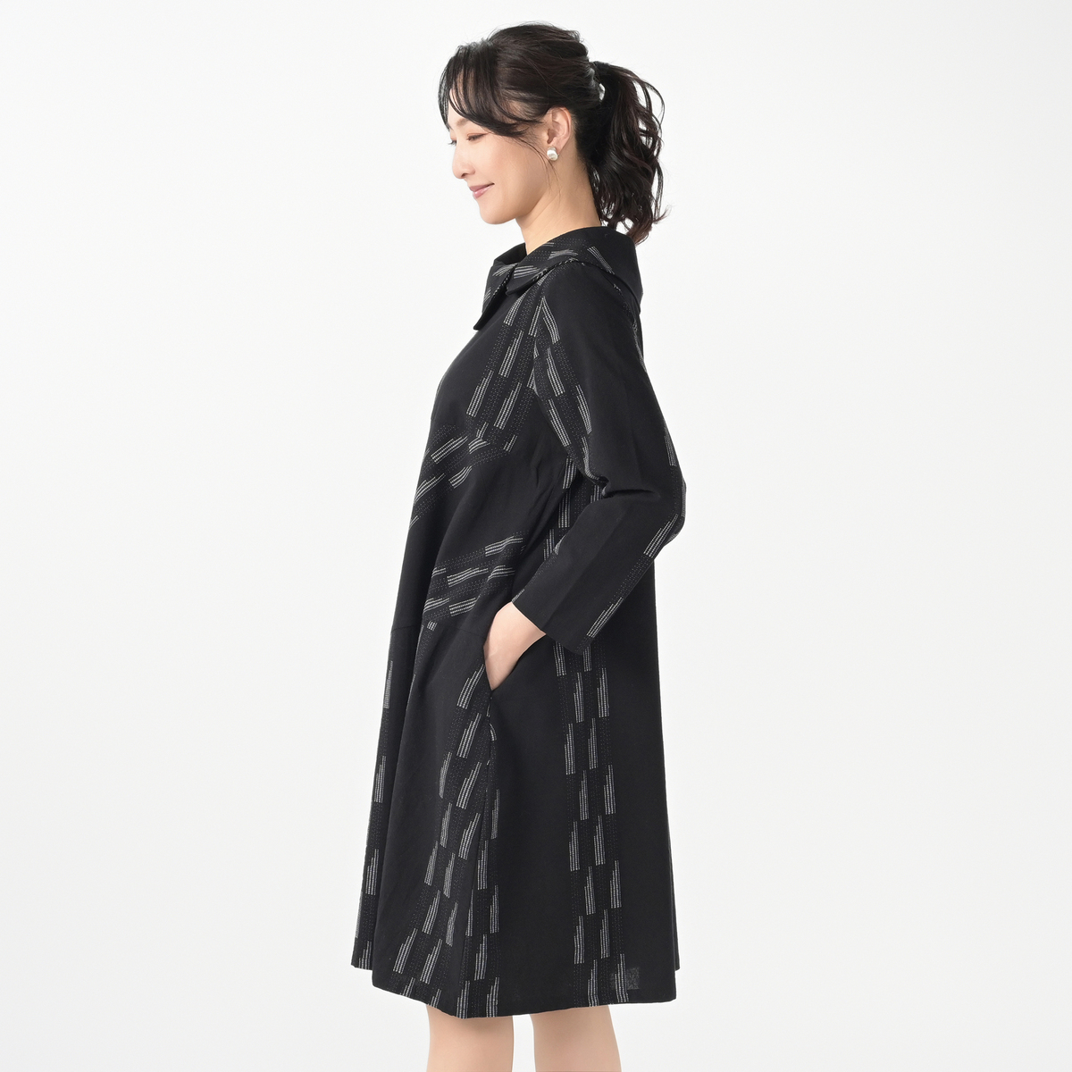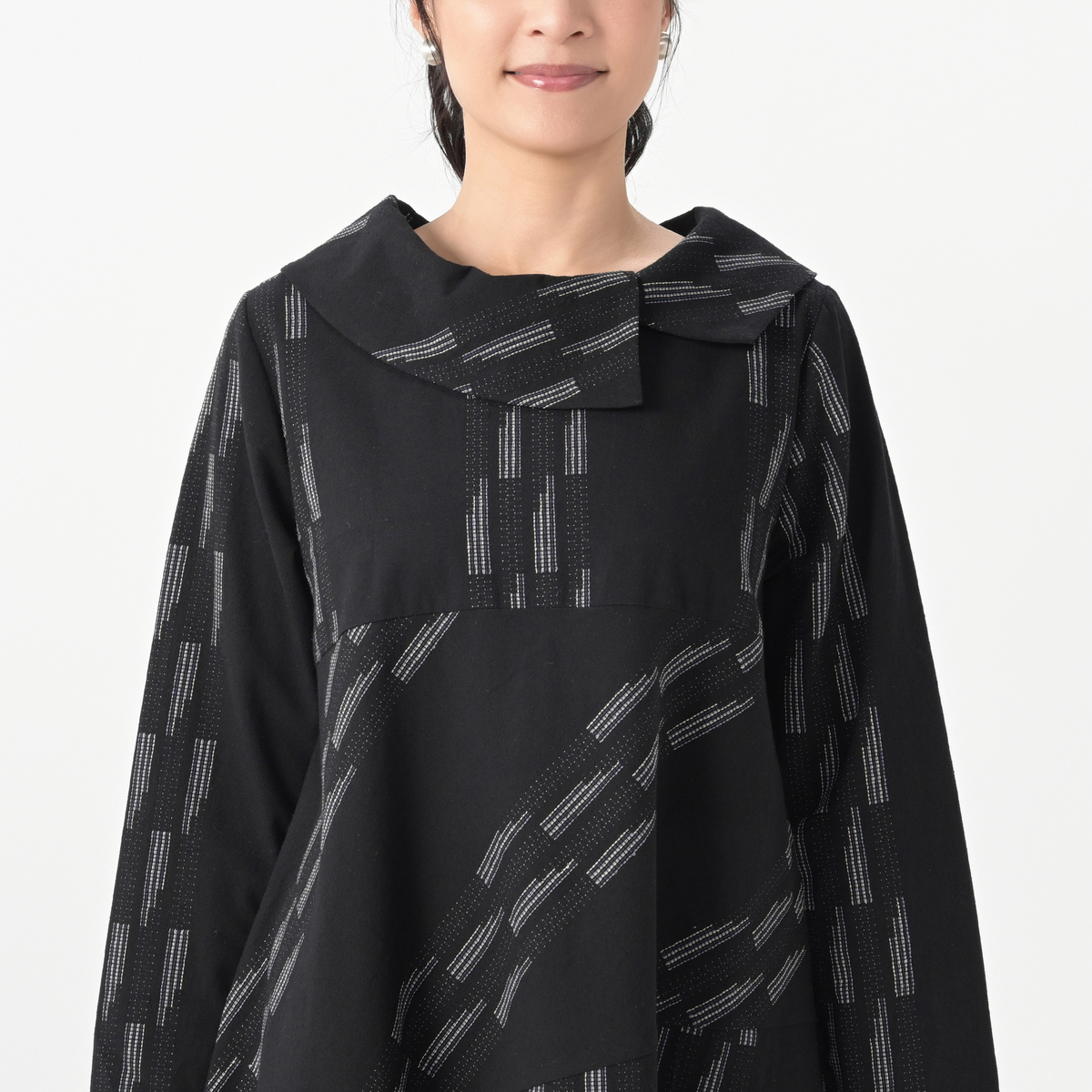 大きなカラーは首元をすっきり見せ、顔まわりを華やかに演出。日常のスタイルをより一層格上げしてくれます
